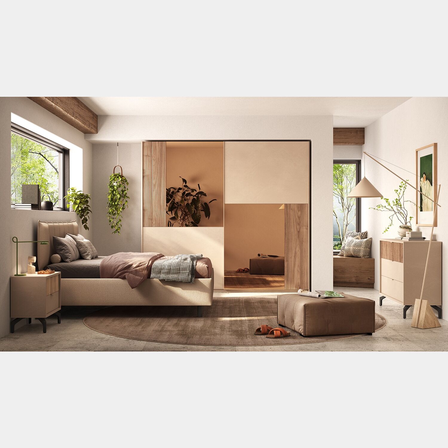 Letto matrimoniale di design, in tessuto colore Tortora