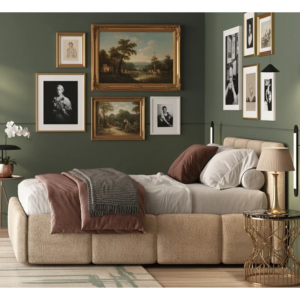 Il tessuto bouclé trasforma il letto in un’esperienza sensoriale.