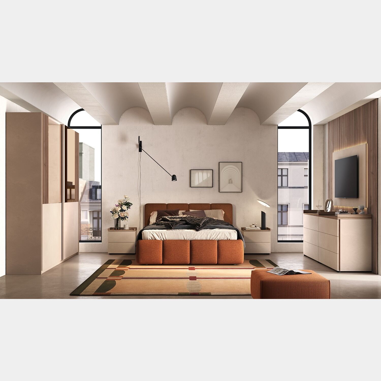 Letto matrimoniale Etra, bouclè Terracotta, Made in Italy