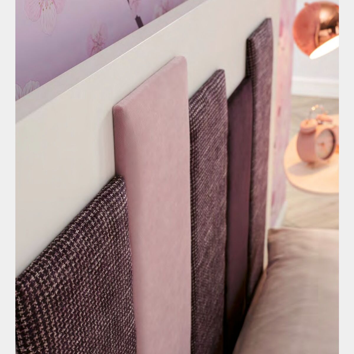 La testata del letto Amandine diventa una tela dove dare sfogo alla propria creatività. Moderna, bella e colorata la testata può essere personalizzata secondo i propri gusti con rivestimenti in tessuto (non sfoderabile) che giocano in diverse tonalità della gamma del rosa.