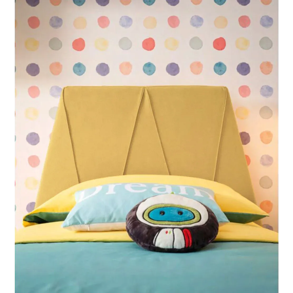 Dormire è più bello quando si risce a sognare. La testata imbottita del letto Peak è accogliente e comoda. Il design moderno si ispira al paesaggio urbano e si riflette in forme squadrate a trapezio valorizzate dal colore in tessuto giallo Girasole.