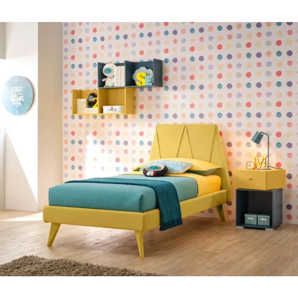 Letto singolo Peak Poly Moretti Compact in tessuto VL 21 con piedini Ocra