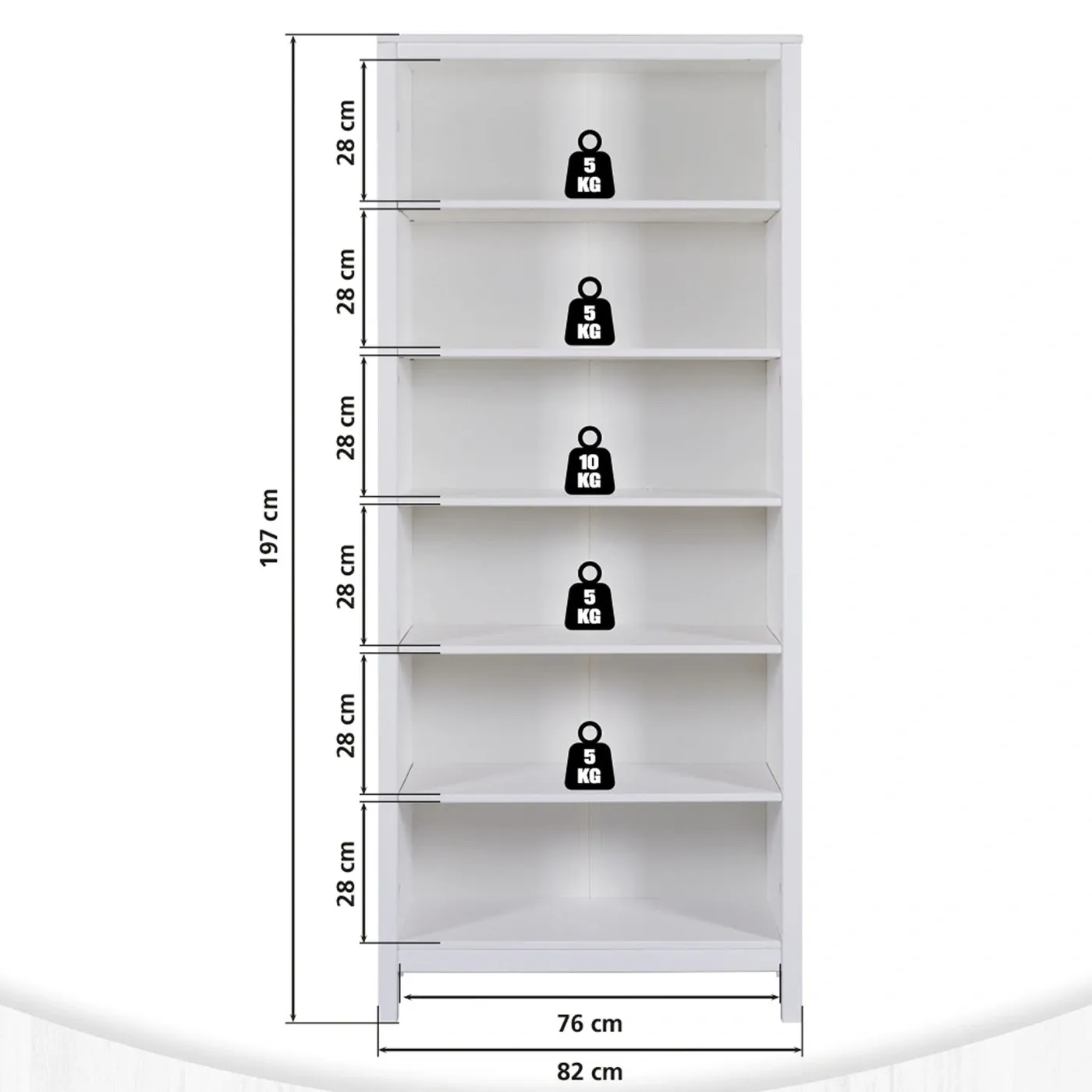 Libreria larga con 5 ripiani, L.82 H.197 P.40, Bianco