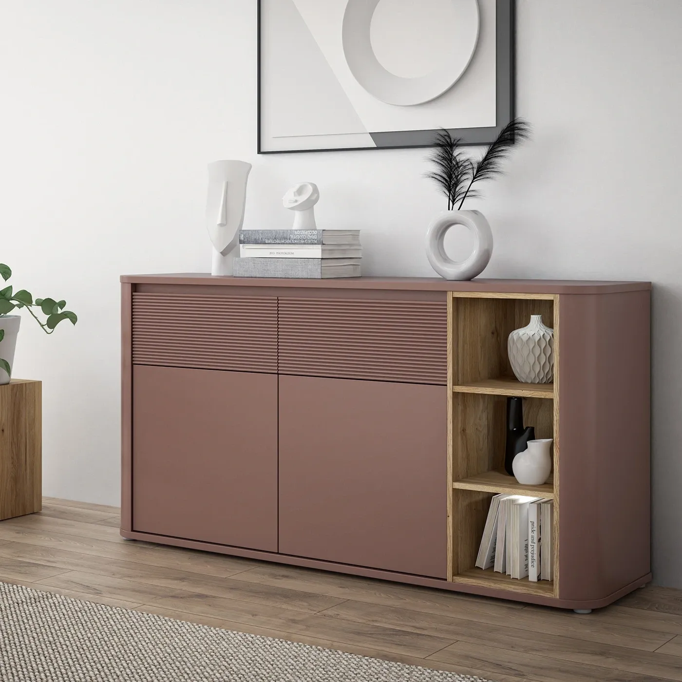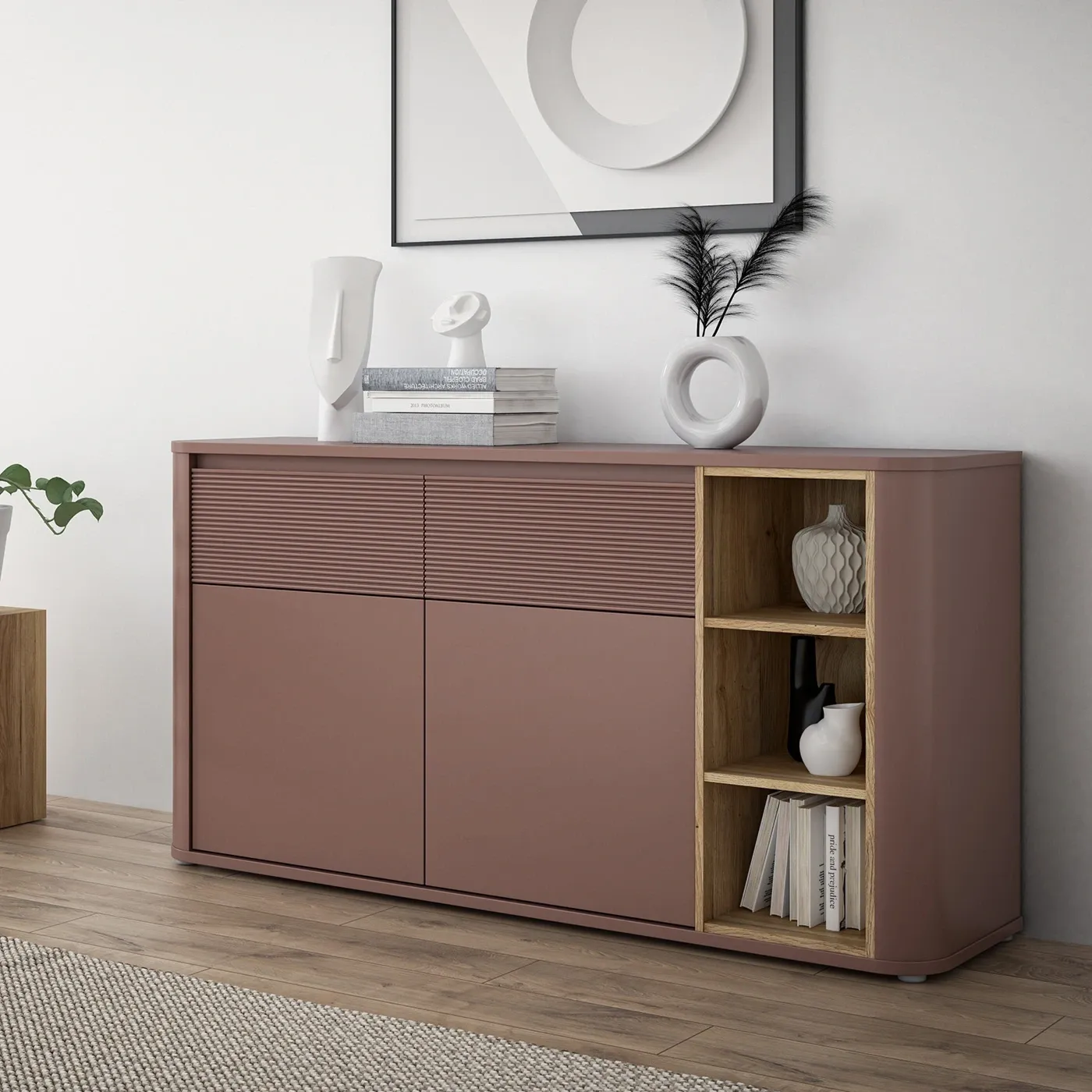 Madia 2 ante e 2 cassetti, L.162 H.84 P.42, Rovere mauvella e Terracotta