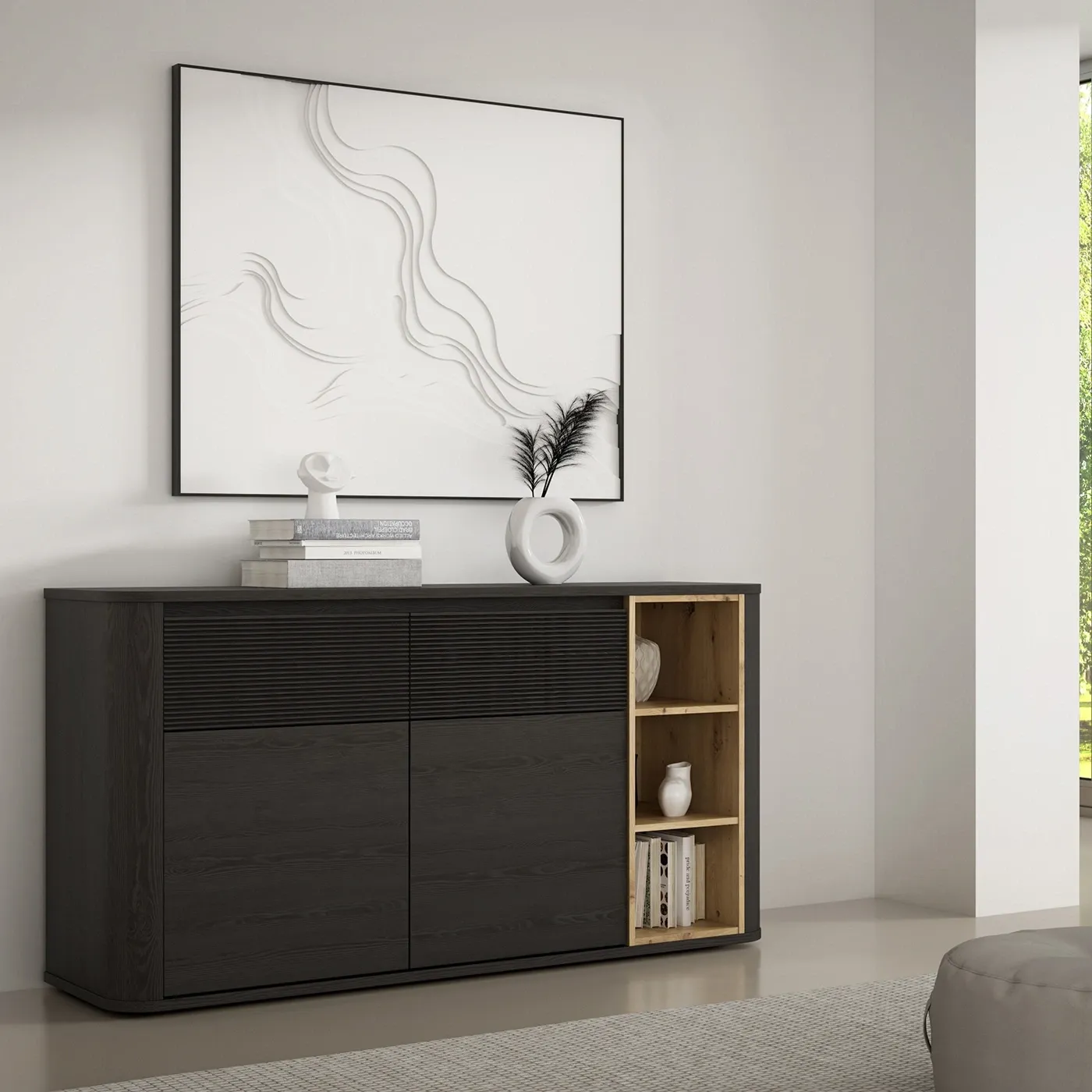 Madia 2 ante e 2 cassetti, L.162 H.84 P.42, Rovere Artisan, Rovere noir e Rovere carbone nero