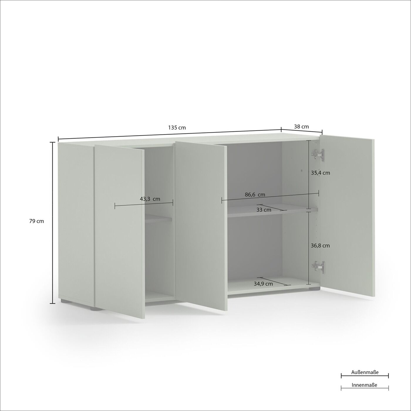 Madia 3 ante, 135x79x38 h cm, Verde salvia