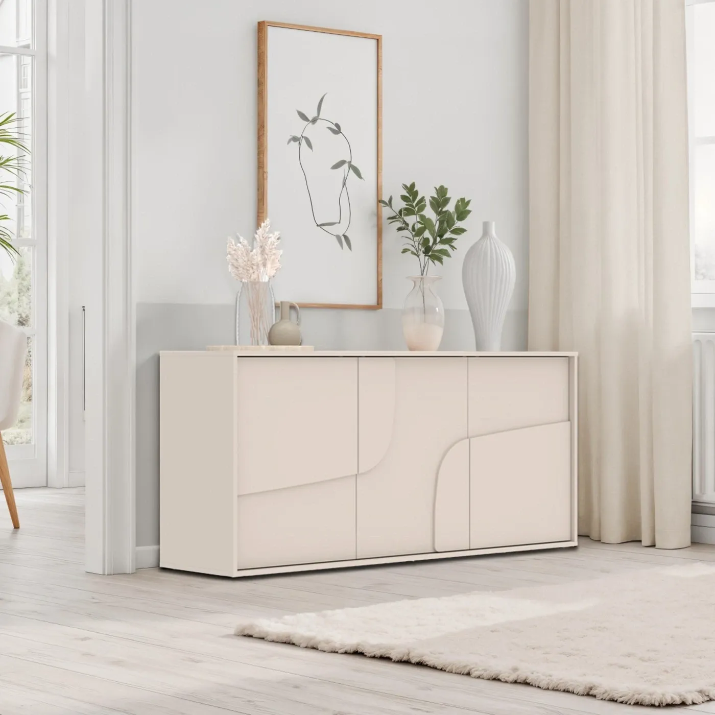 Madia 3 ante con elegante serigrafia, L.155 H.70 P.40, Cashmere