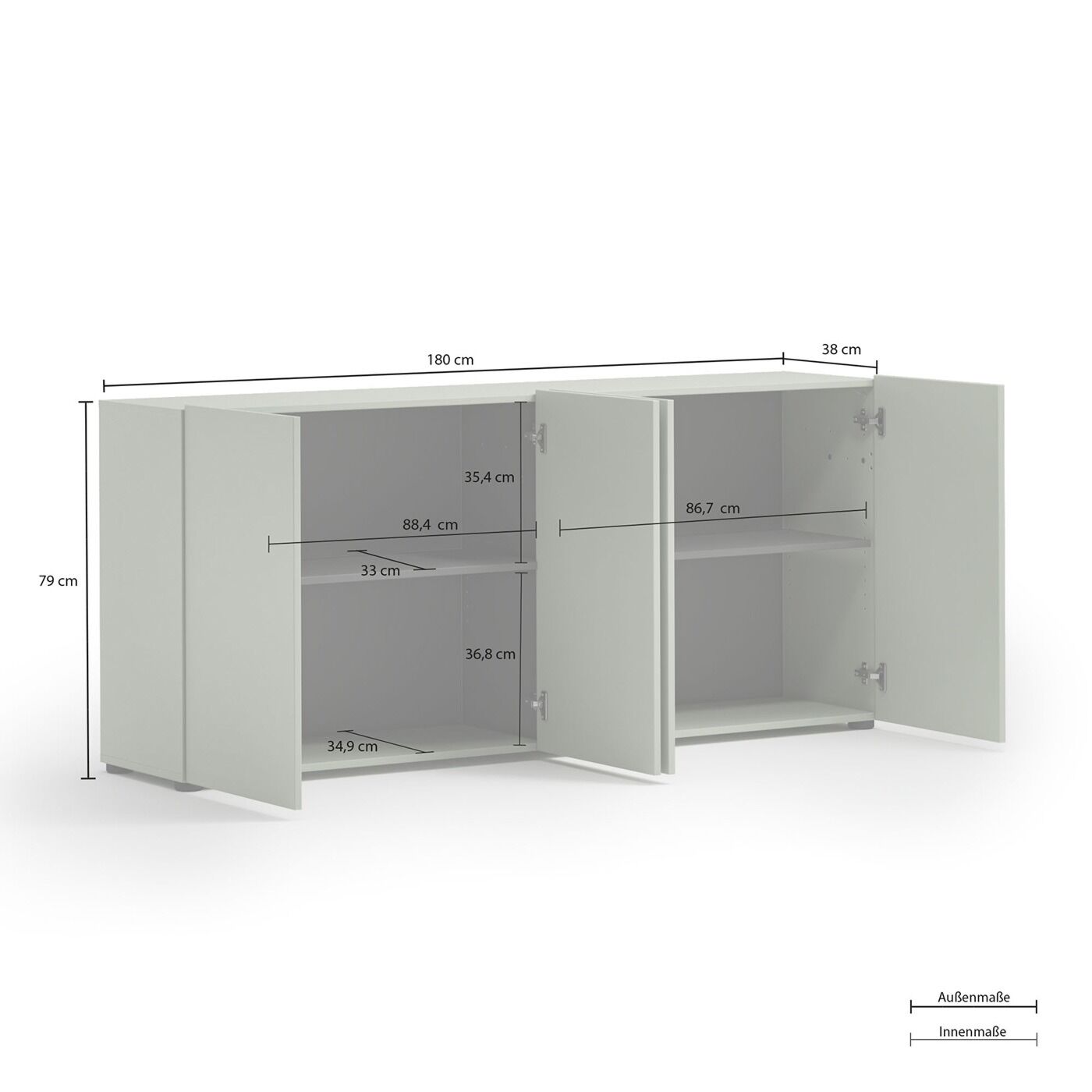 Madia a 4 ante, 180x79x38 h cm, color Verde salvia