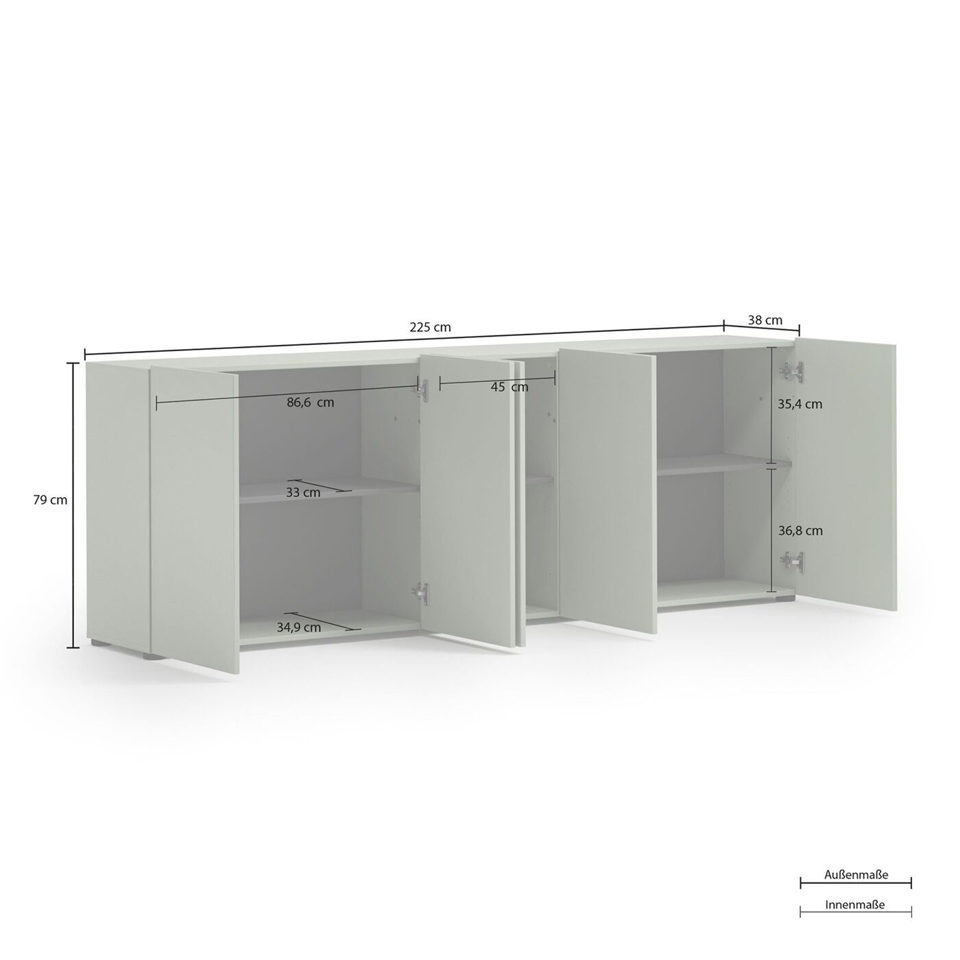 Madia a 5 ante, 225x79x38 h cm, Verde salvia