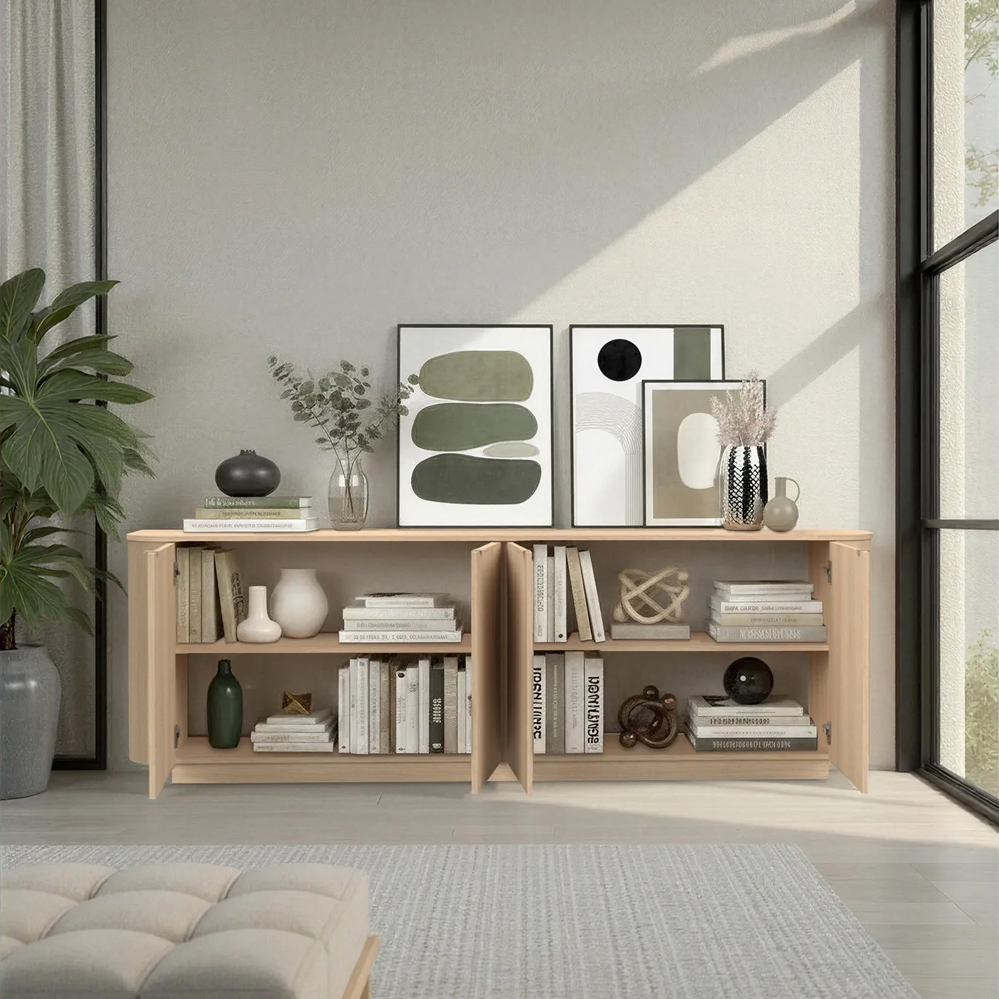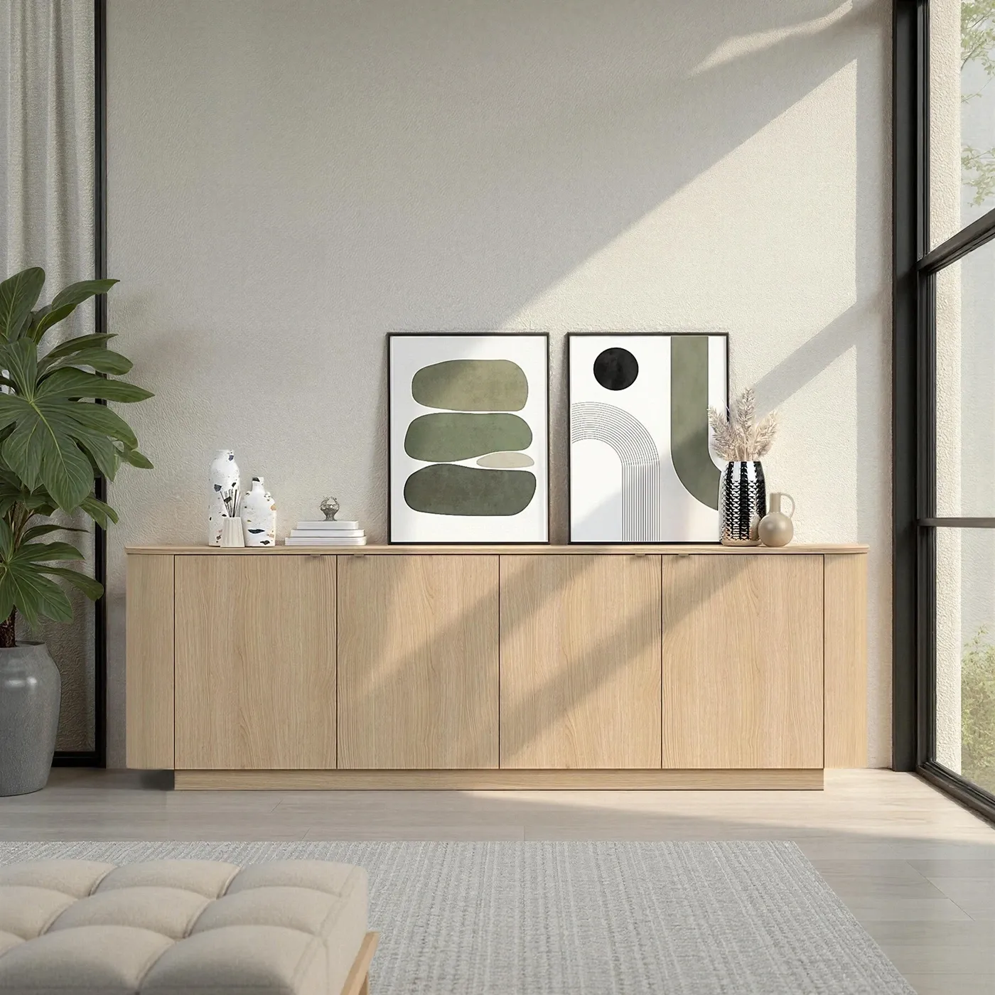 Linee avvolgenti e una cura artigianale per il dettaglio trasformano questa madia nel cuore pulsante del living contemporaneo. La particolare curvatura dei fianchi sfida il rigore geometrico tradizionale, regalando un’estetica morbida che invita al tatto e conquista lo sguardo.