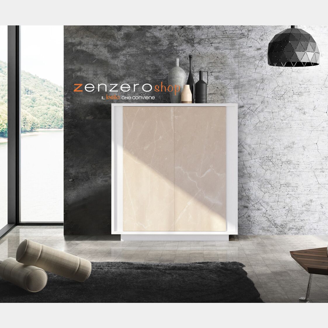 Madia di Design Alta, Credenza Moderna 2 ante, Bianco Nobilitato e Opera