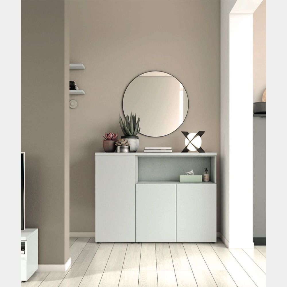 Madia moderna con 3 ante e un vano a giorno in finitura Cemento artico