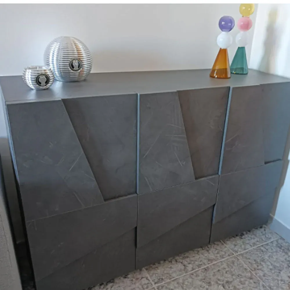 Madia moderna con 3 ante dal disegno geometrico in finitura Ardesia
