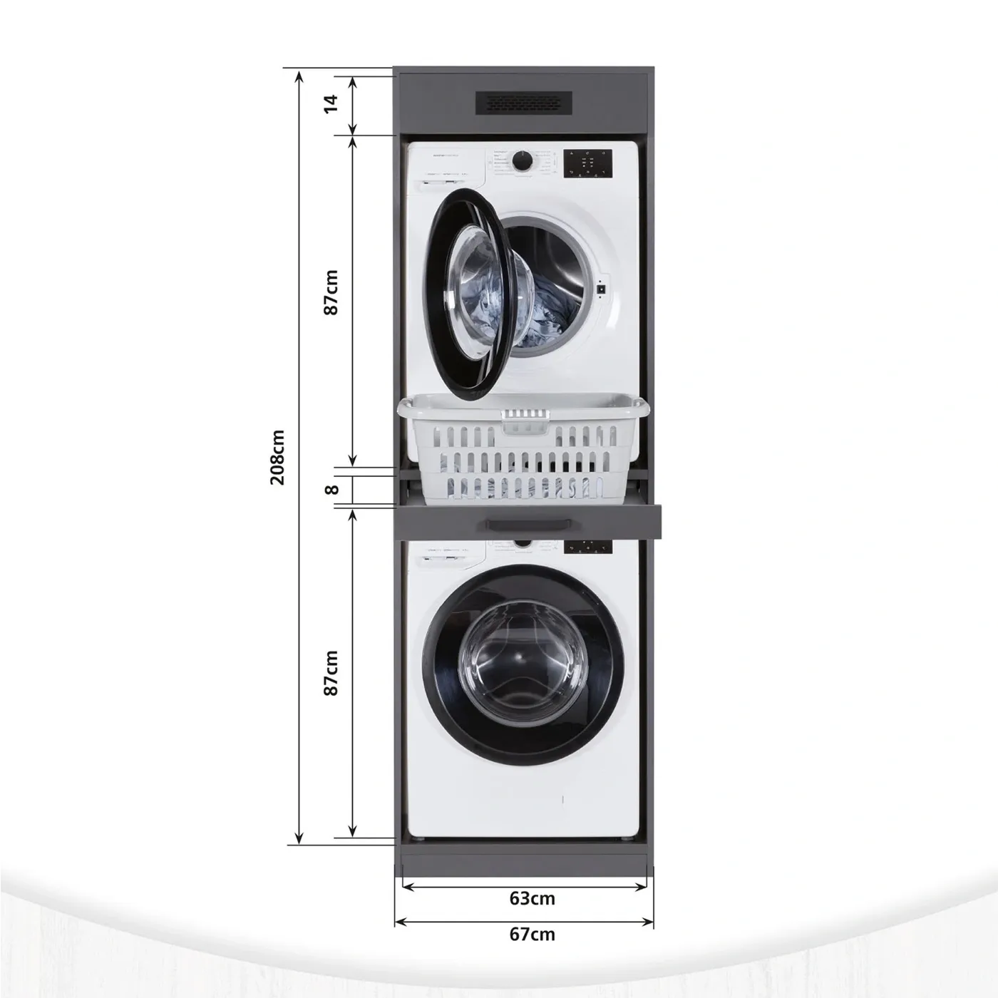 Mobile con 2 vani porta lavatrice e contenitore, L.67 H.208 P.68, Antracite