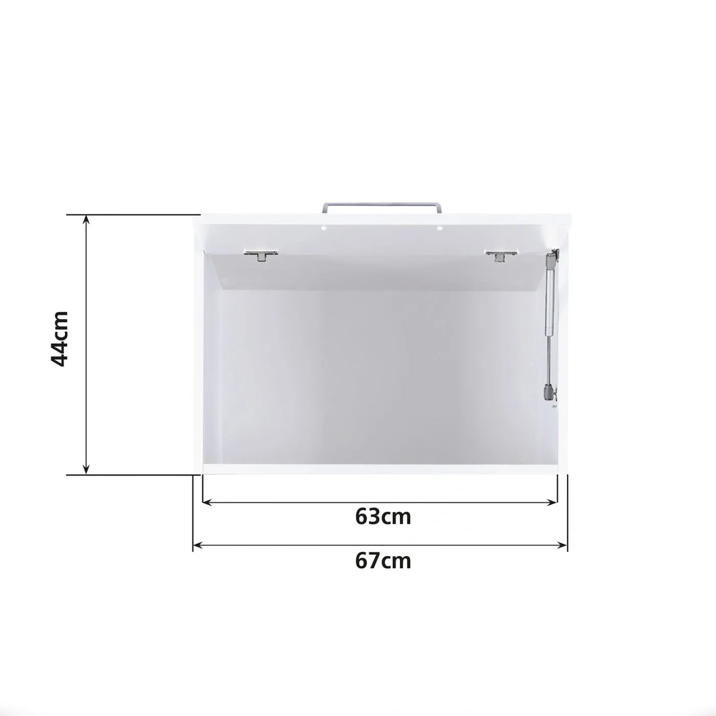 Pensile sospeso ad un'anta con un vano contenitore, L.67 H.44 P.68, Bianco