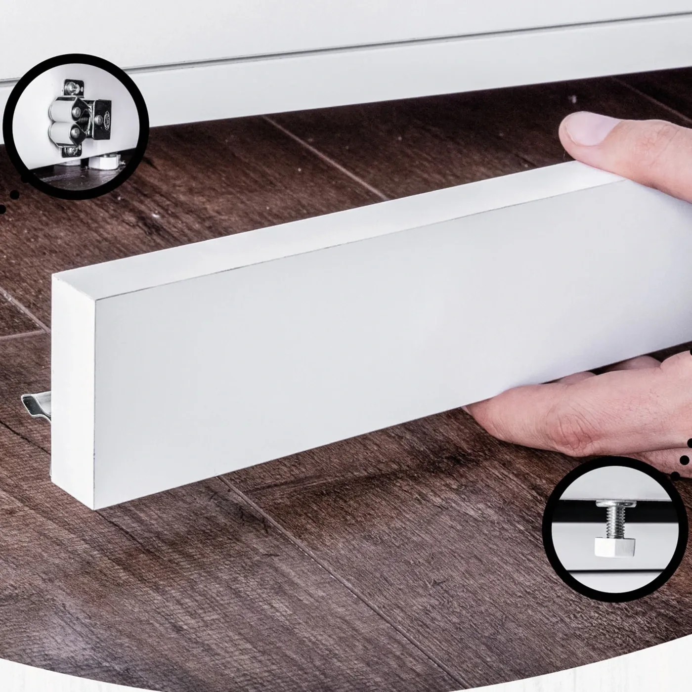 Lo zoccolo del mobile è facilmente rimovibile. La superficie è rivestita in melaninico.