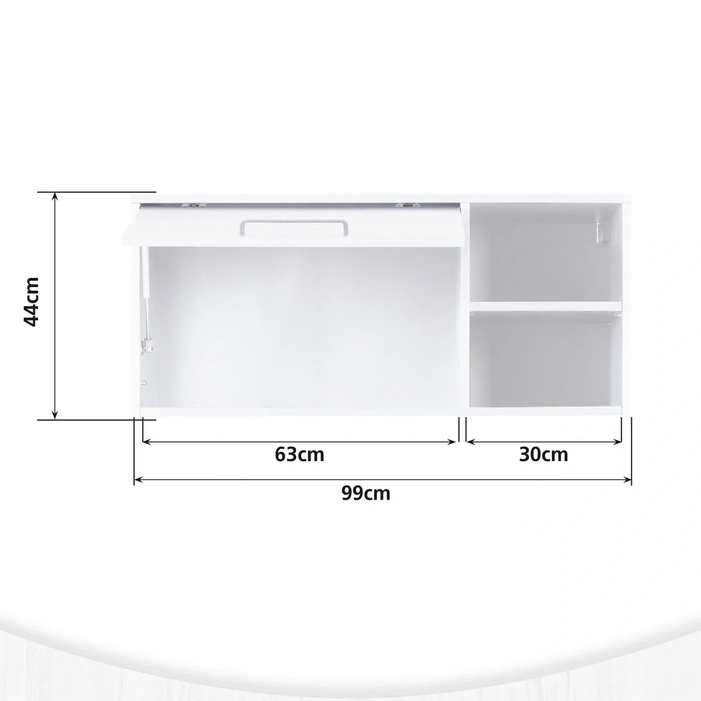 Pensile sospeso ad un'anta e 3 vani contenitori, L.99 H.44 P.40, Bianco