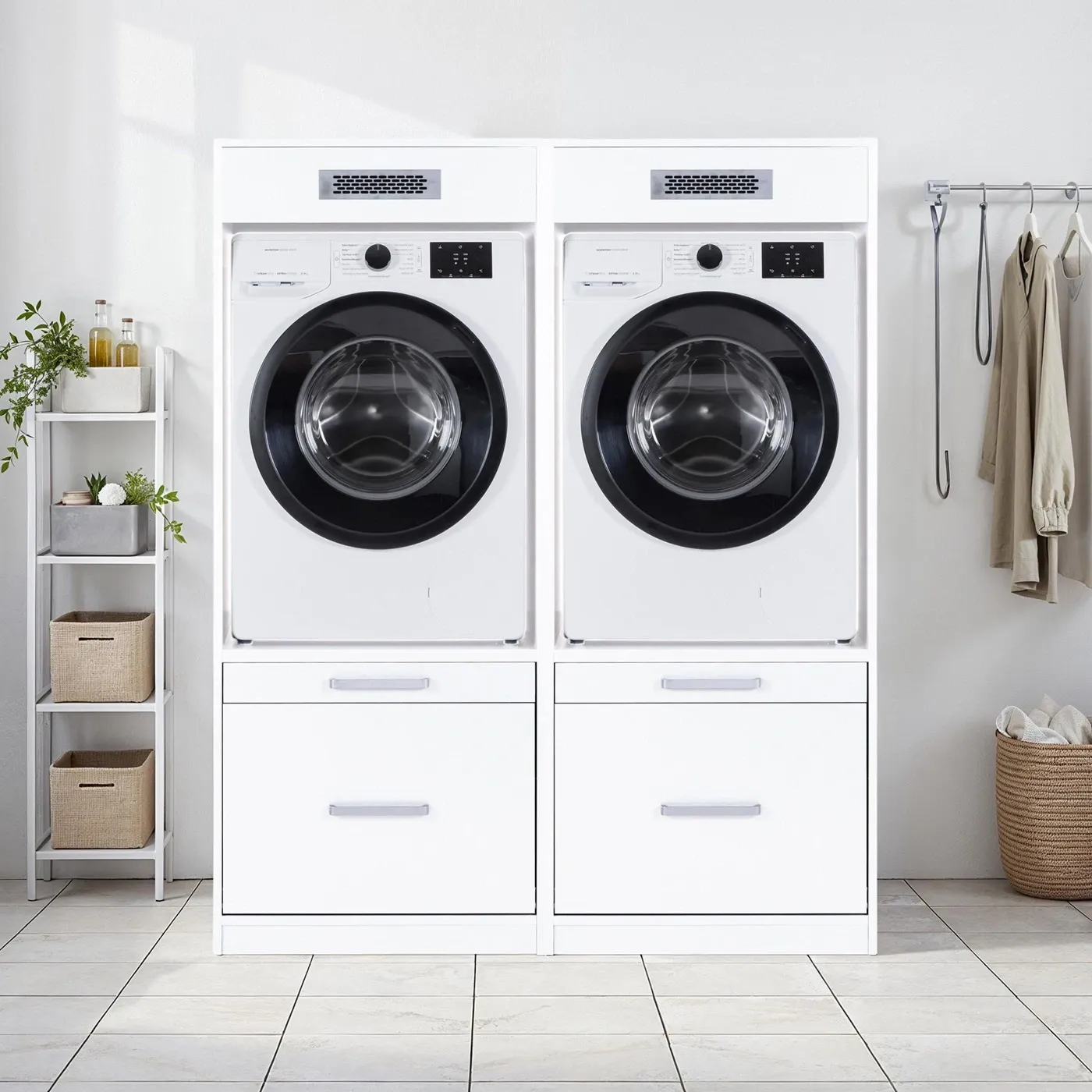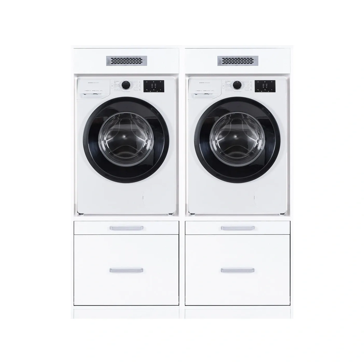 Composizione di 2 mobili porta lavatrice e dotata di 2 cassetti per conservare detersivi, asciugamani e altri strumenti utili alla pulizia della casa. Ideale per essere posto all'interno di una lavanderia.