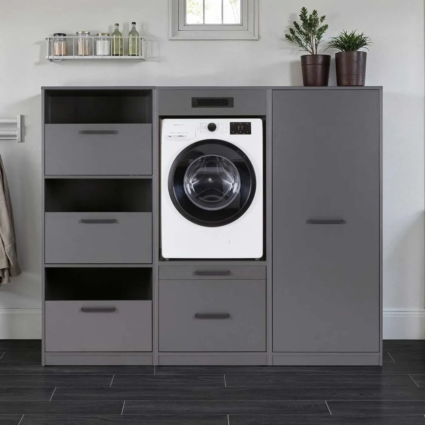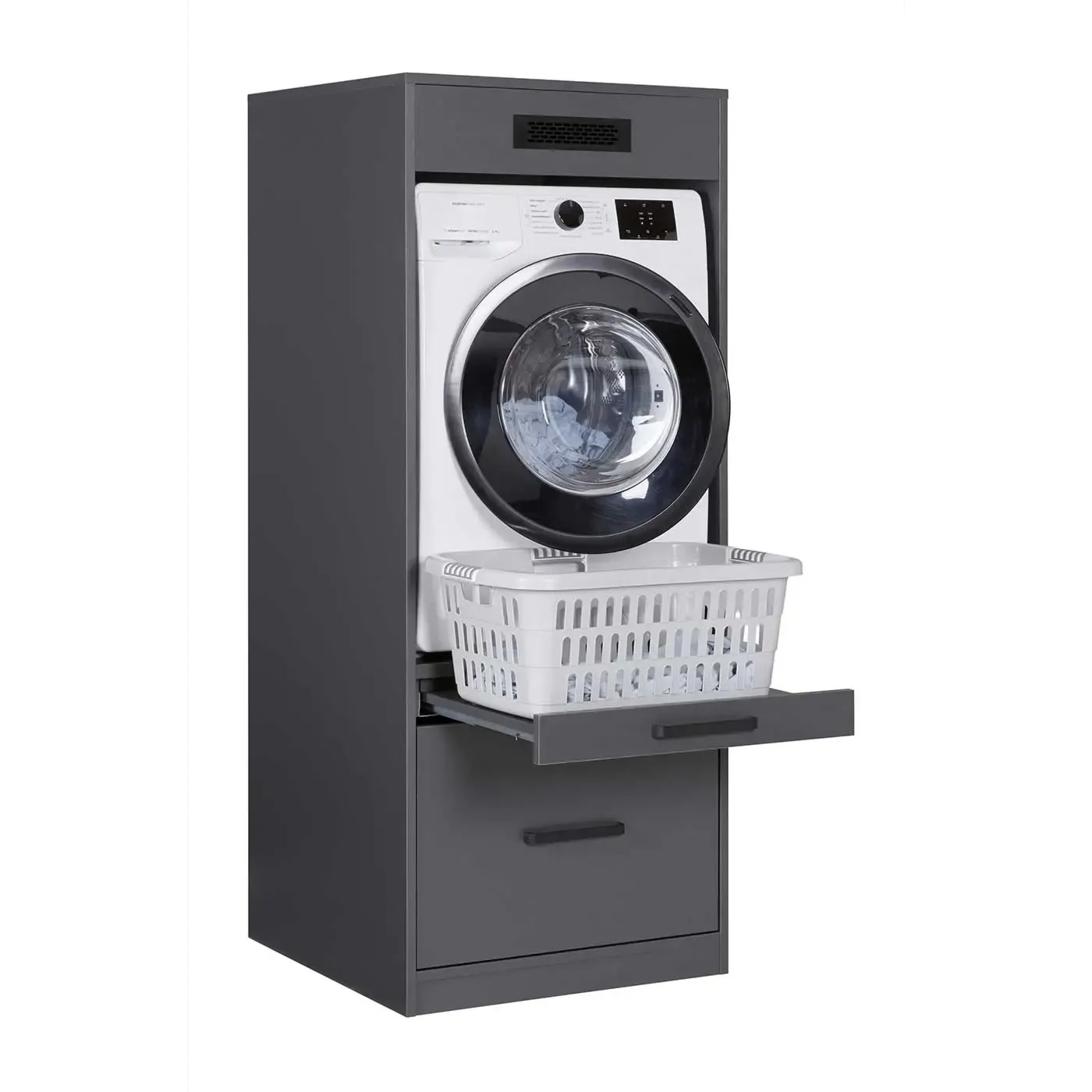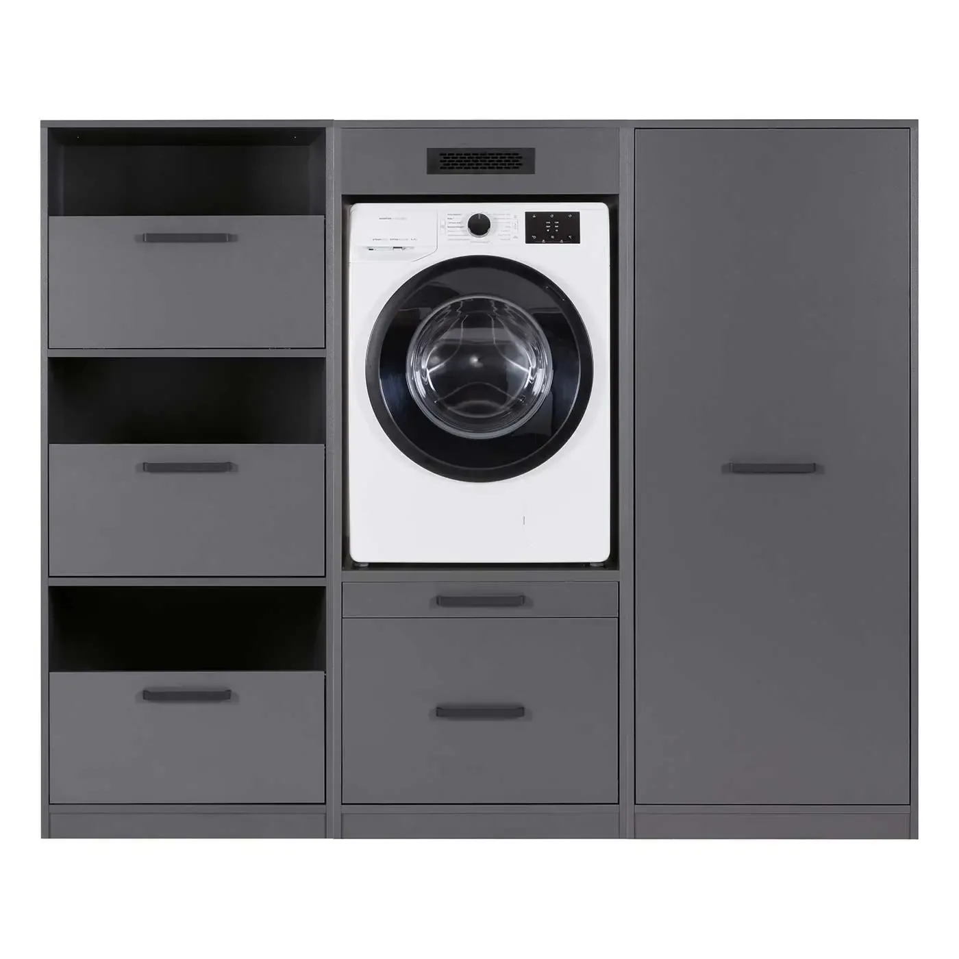 Composizione di mobile porta lavatrice, armadietto e cassettiera, L.201 H.164 P.68, Antracite