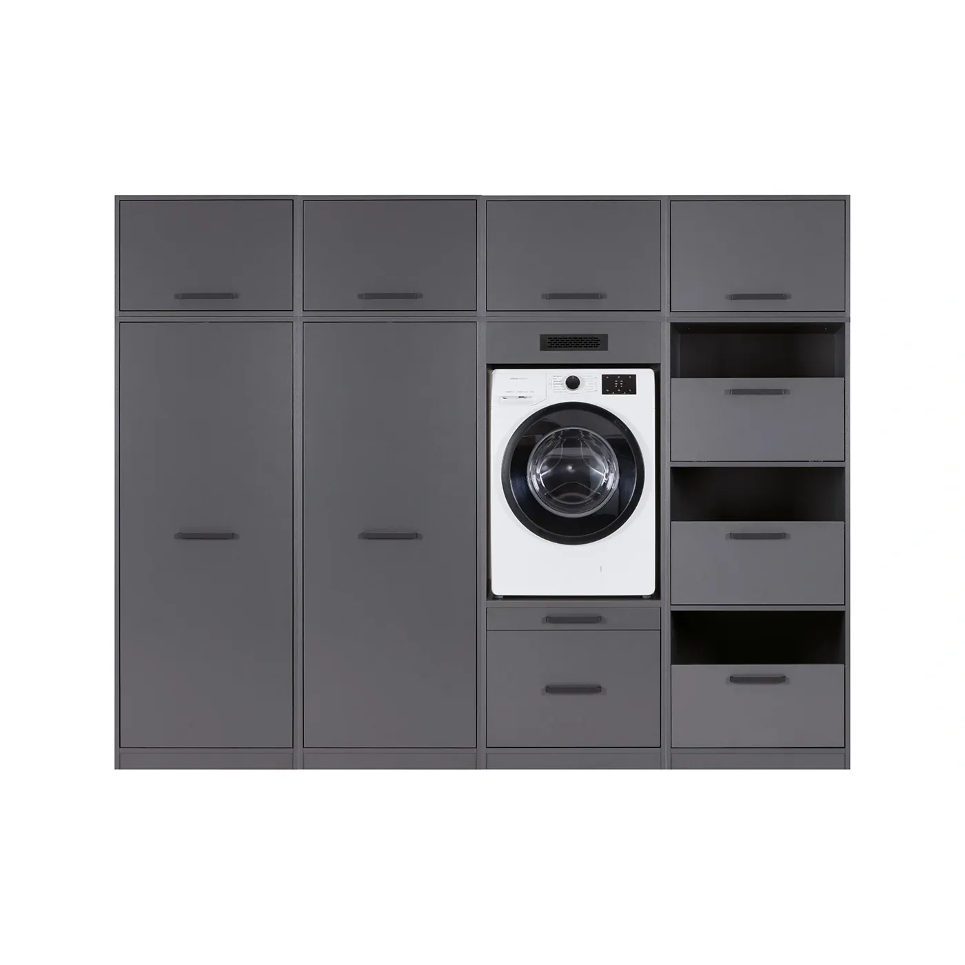 Composizione di mobile porta lavatrice, 2 armadietti e cassettiera, L.268 H.208 P.68, Antracite
