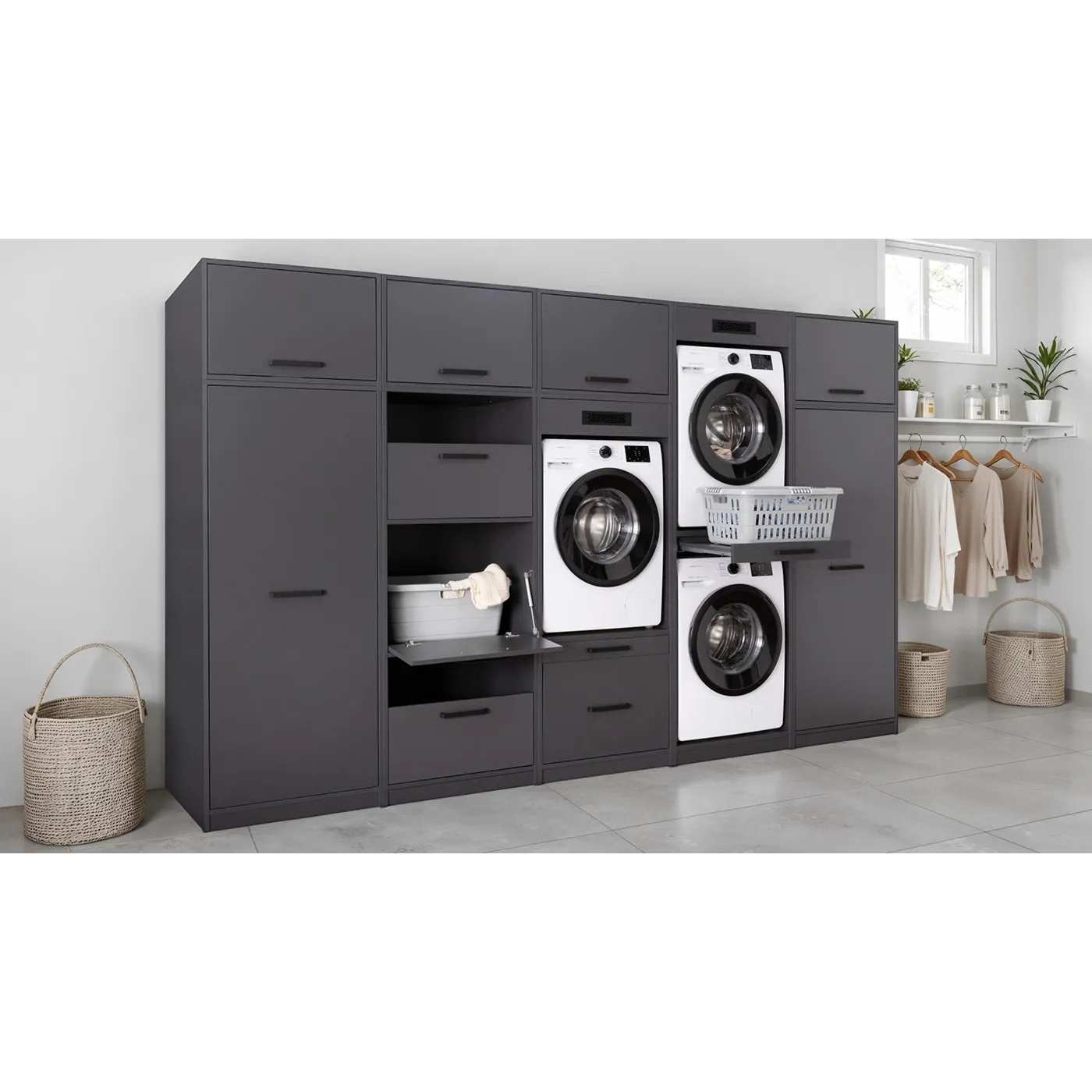 Composizione di 2 mobili porta lavatrice, 2 armadietti e cassettiera, L.335 H.208 P.68, Antracite