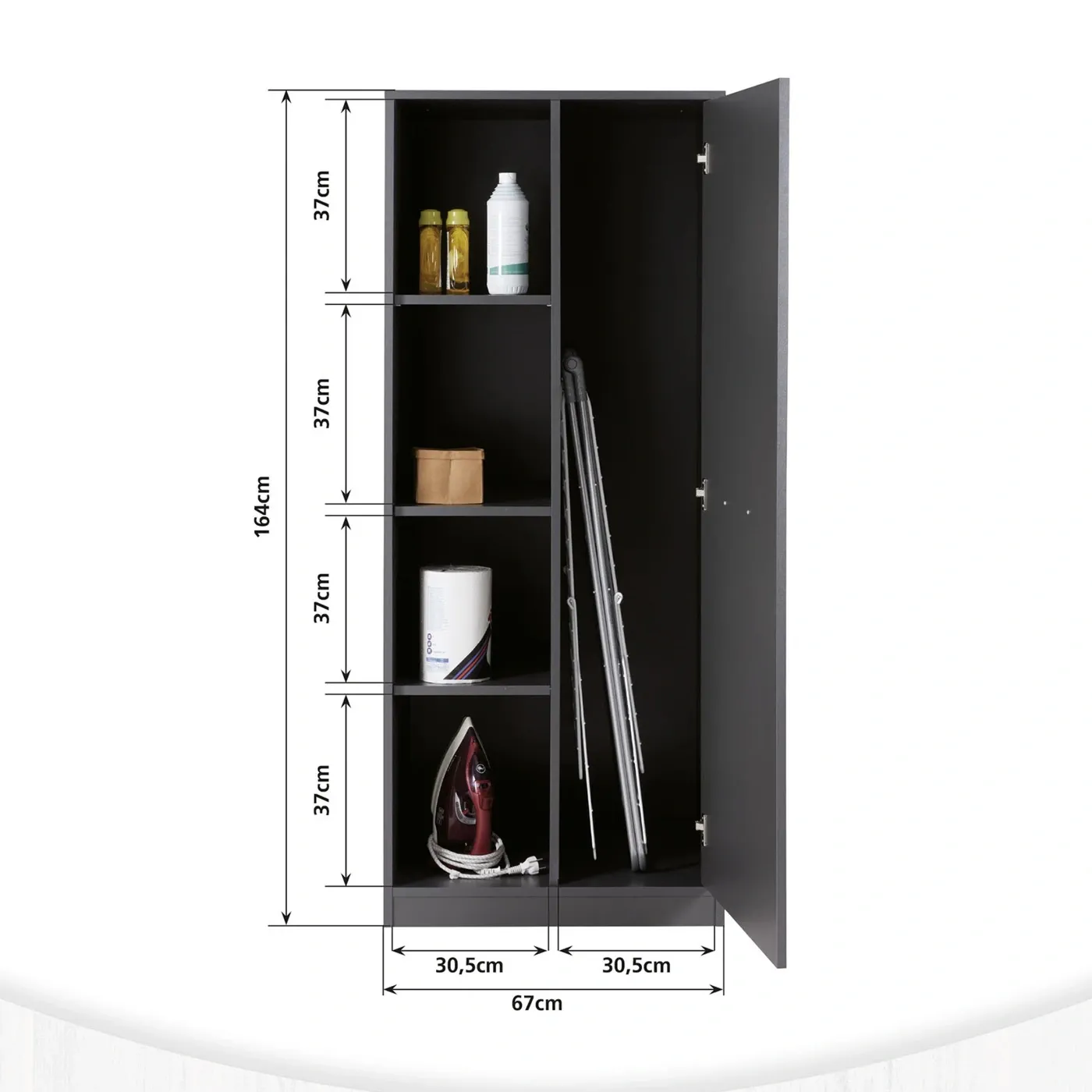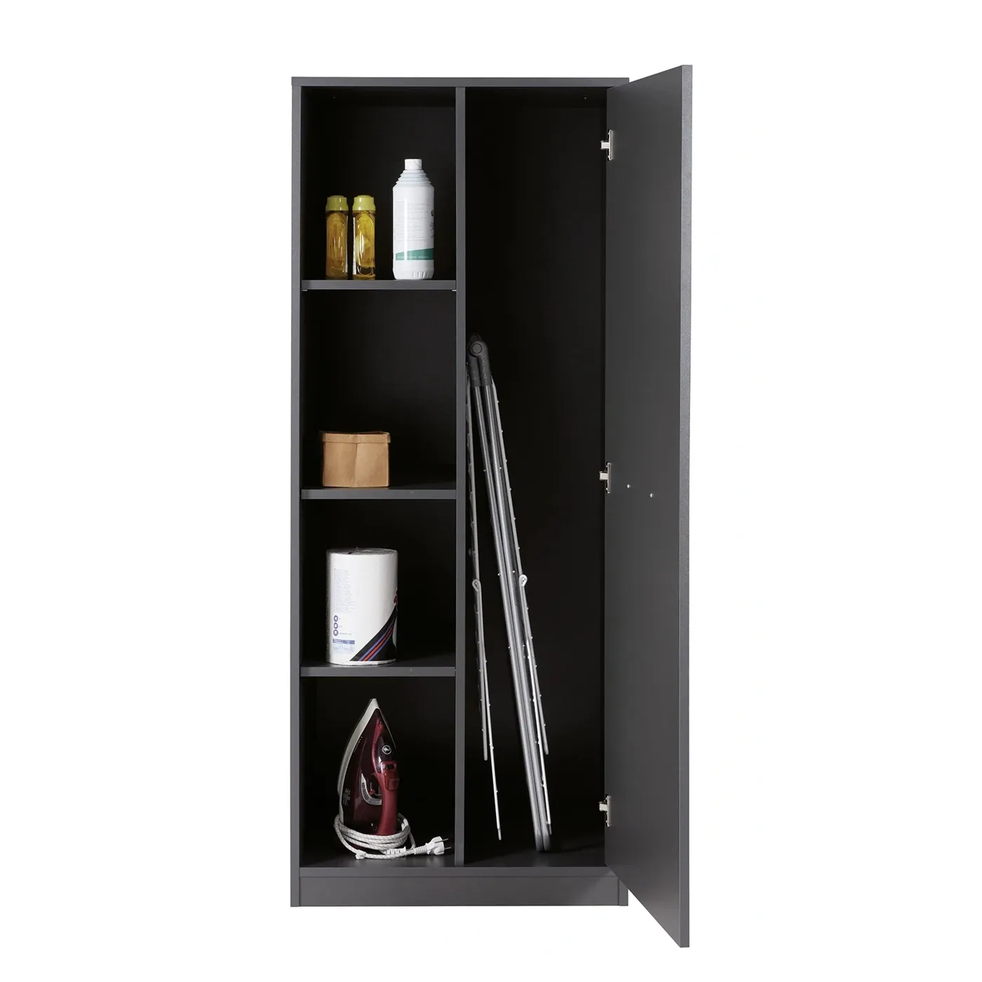 Mobile ad un'anta con 3 ripiani e vano contenitori, L.67 H.164 P.68, Antracite