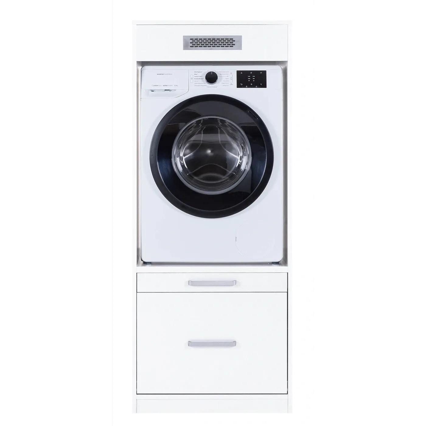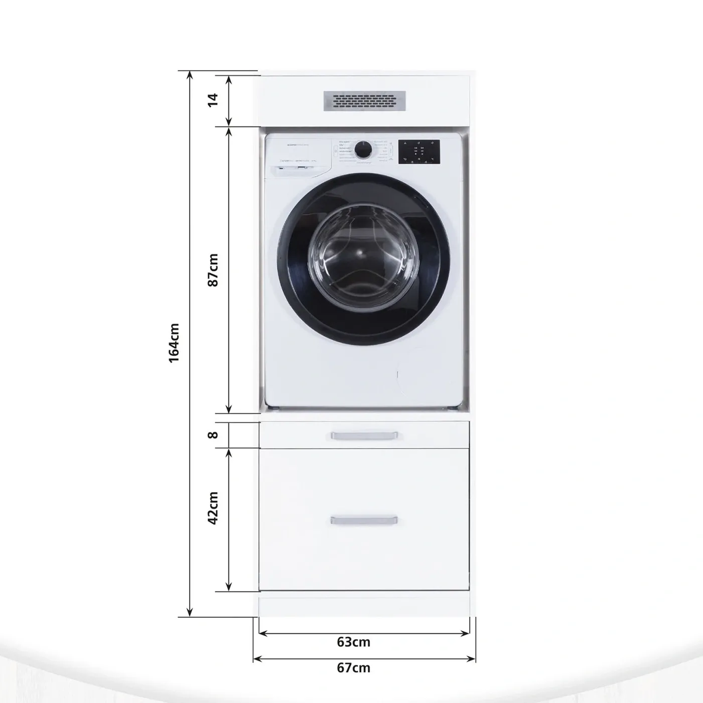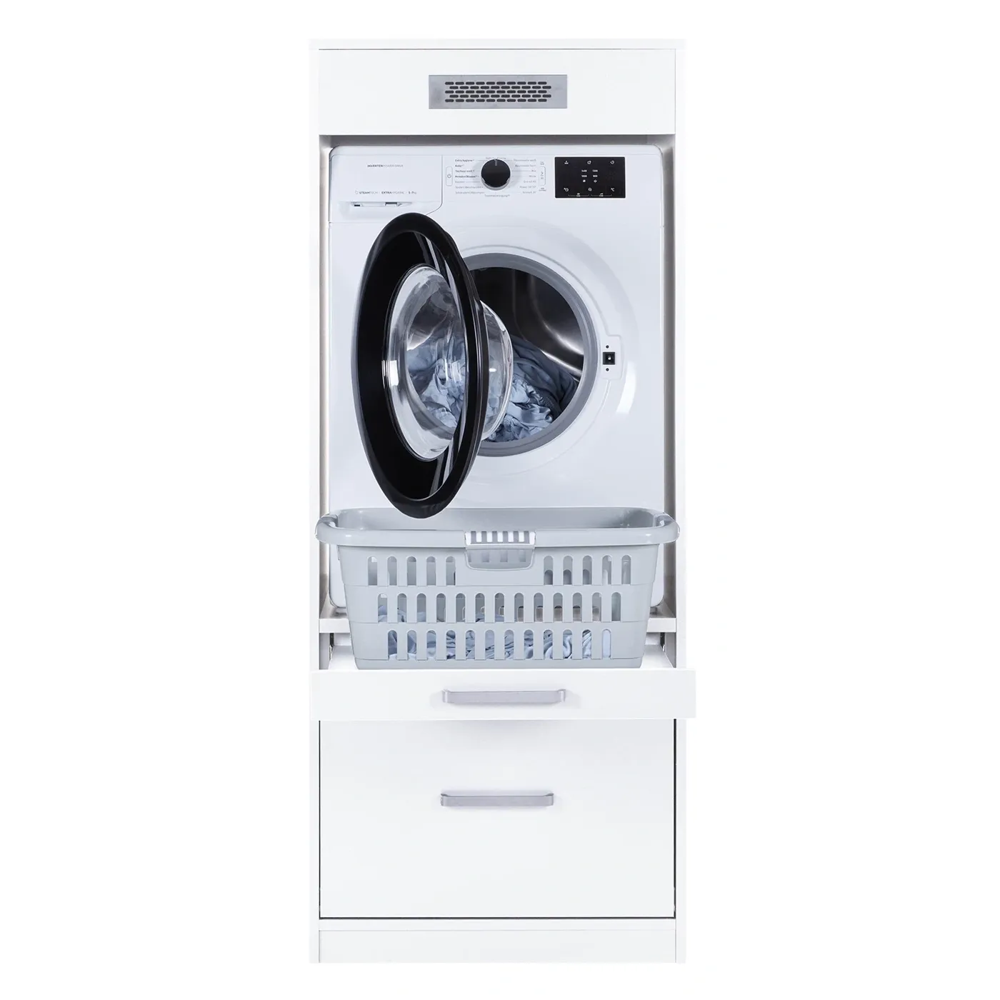 Mobile porta lavatrice e contenitore, L.67 H.164 P.68, Bianco