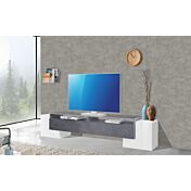 La finitura in Bianco lucido si contrappone alle sfumature dell'Ardesia per donare al porta tv uno stile unico e ricercato. Il mobile è inoltre disponibile nella finitura in Bianco lucido e Pero oppure completamente bianco lucido.