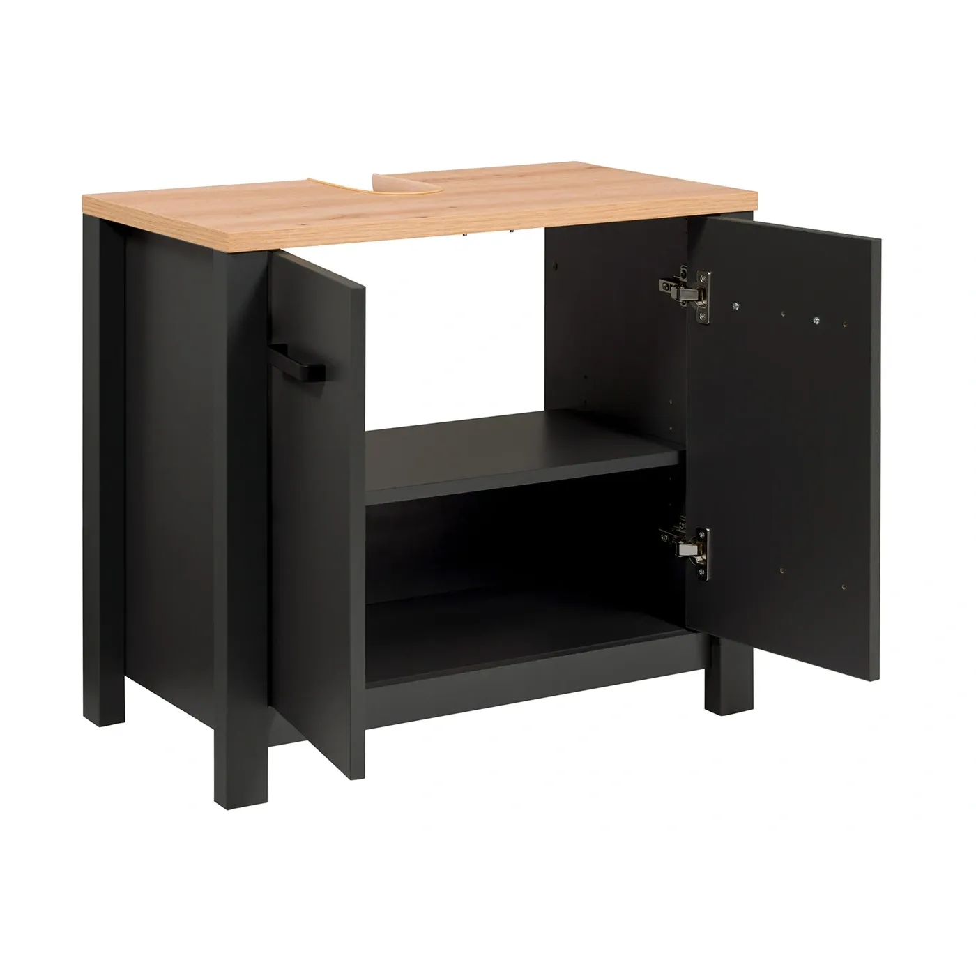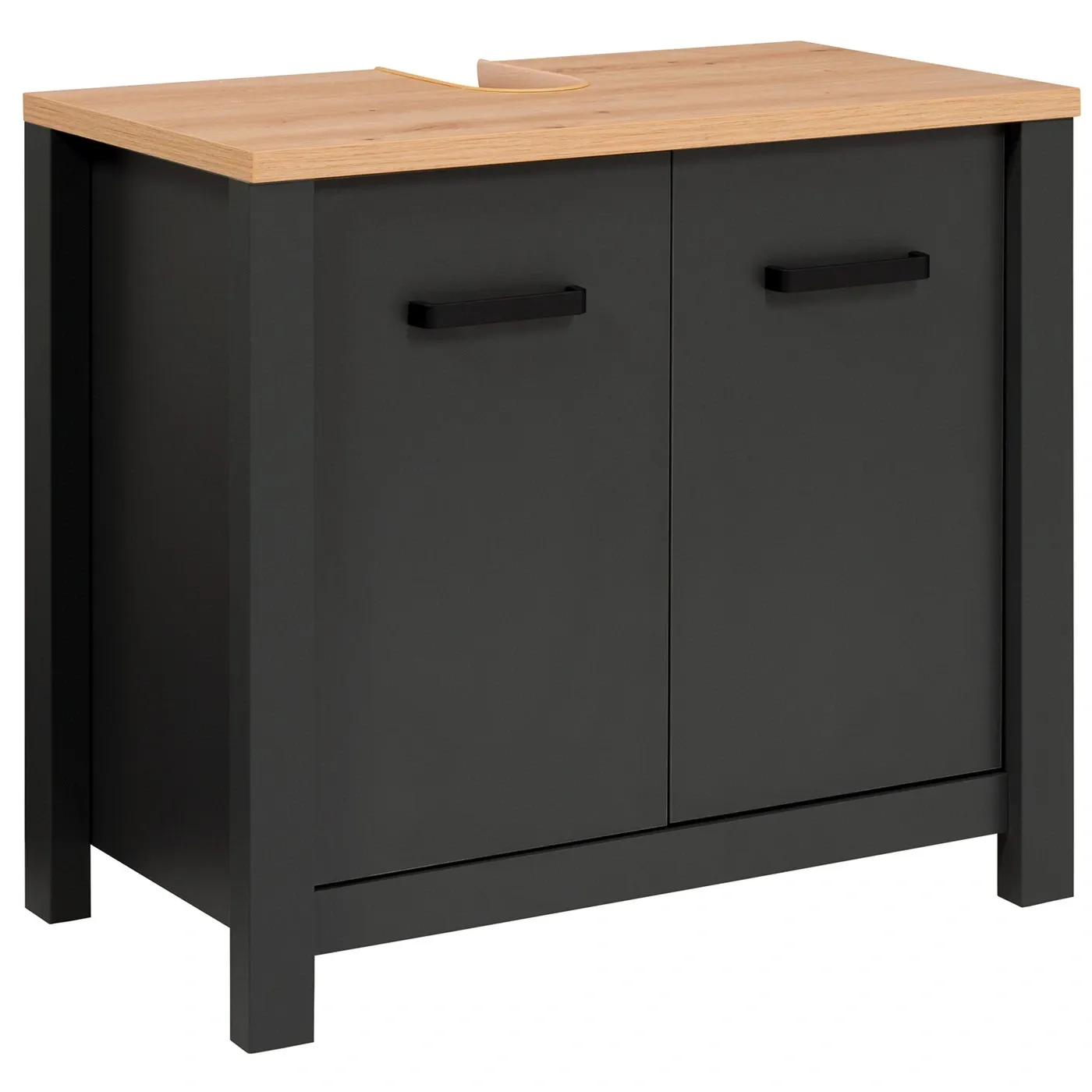 Mobiletto da bagno portalavabo, L.70 H.63 P.40, Rovere artisan e Antracite