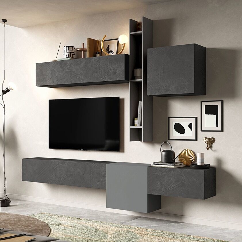 Vi proponiamo una parete attrezzata dal design elegante e innovativo, concepita per stupire i vostri ospiti e non stancare mai: in qualunque ambiente sceglierai di inserirla, lo impreziosirà grazie alle sue linee raffinate e del suo grande impatto visivo. Realizzata nella moderna finitura Piombo e Ardesia, saprà raccontare davvero tanto di te, lasciando di stucco i tuoi ospiti!