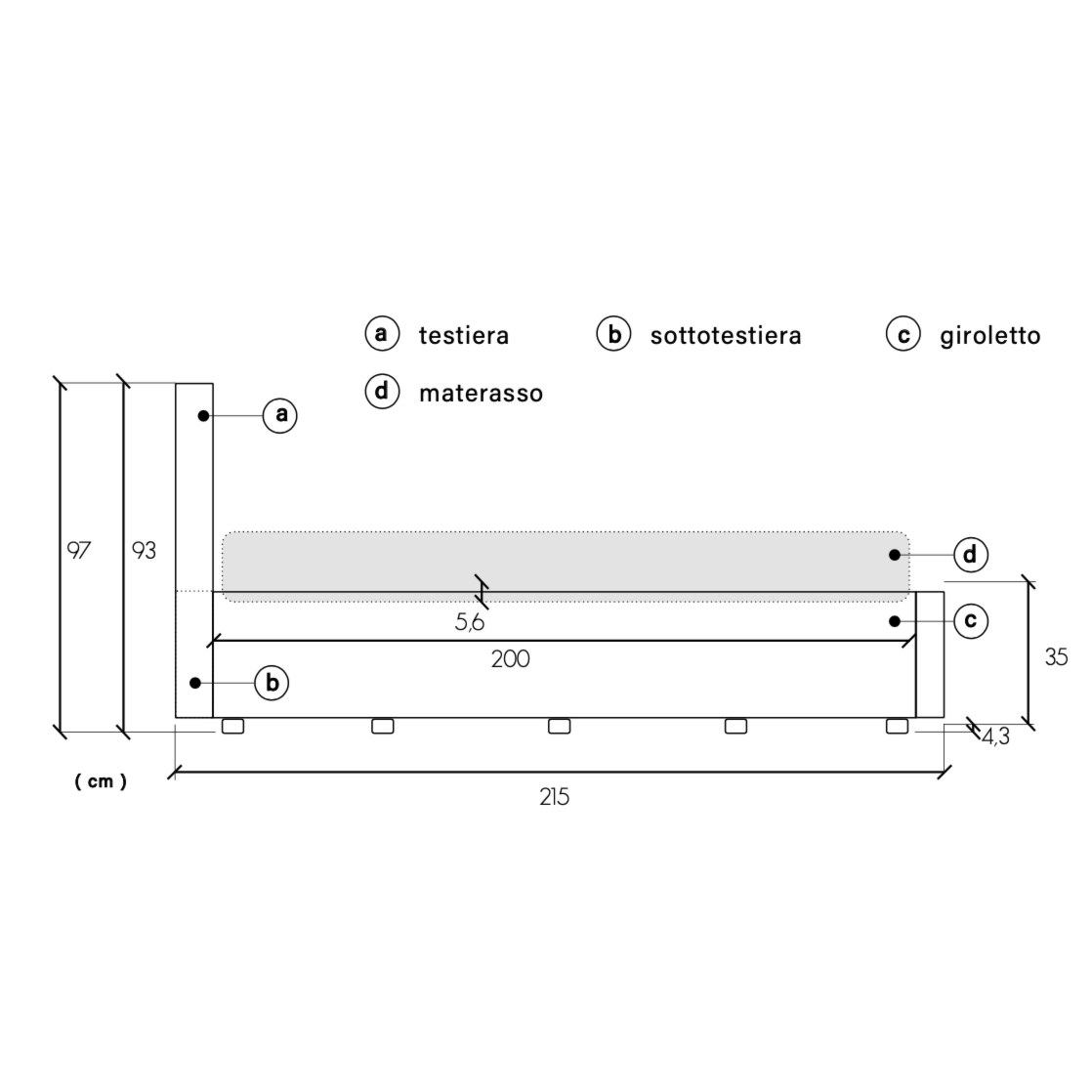 Letto: L.190 H.97 P.215
