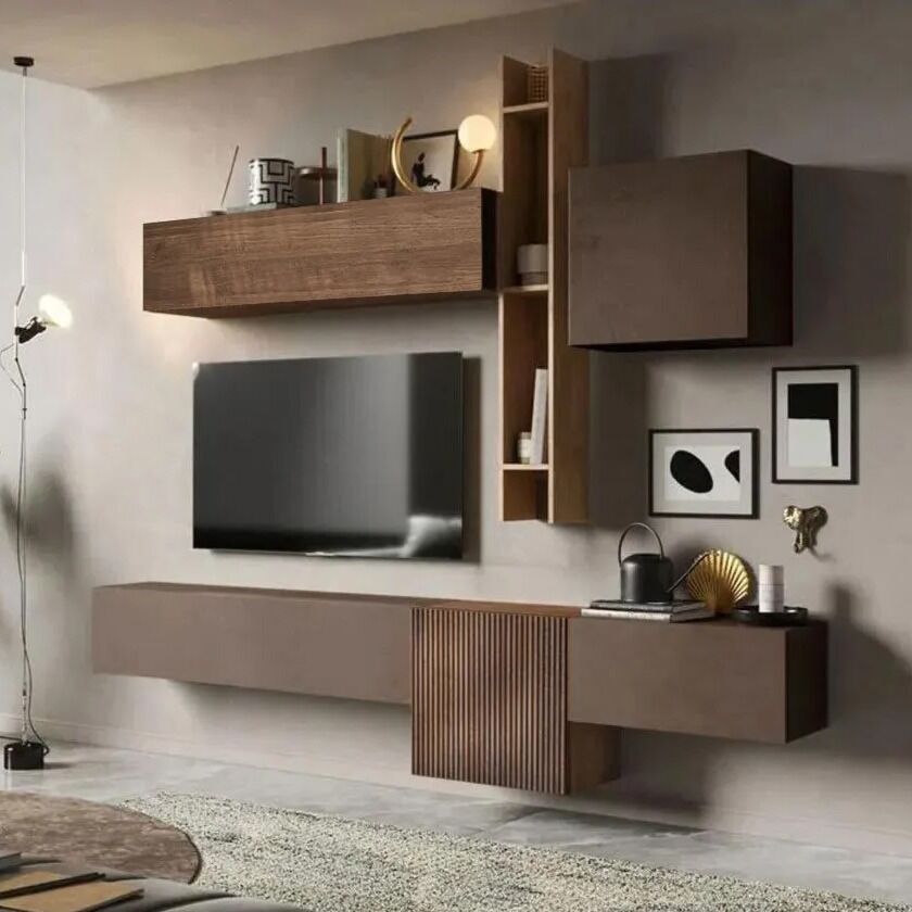 Grazie infatti ai numerosi elementi che la compongono la parete assicura ampio spazio contenitivo per libri, soprammobili e piccoli oggetti d'arredo, al contempo, il contrasto generato tra le tinte Bronzo, Mercure e Mercure cannettato assicura stile e carattere all'ambiente.