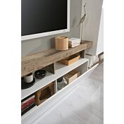Parete attrezzata in finitura bianco laccato lucido e pero: è la soluzione ideale per chi vuole arredare il proprio living dandogli un tocco personale ed elegante.