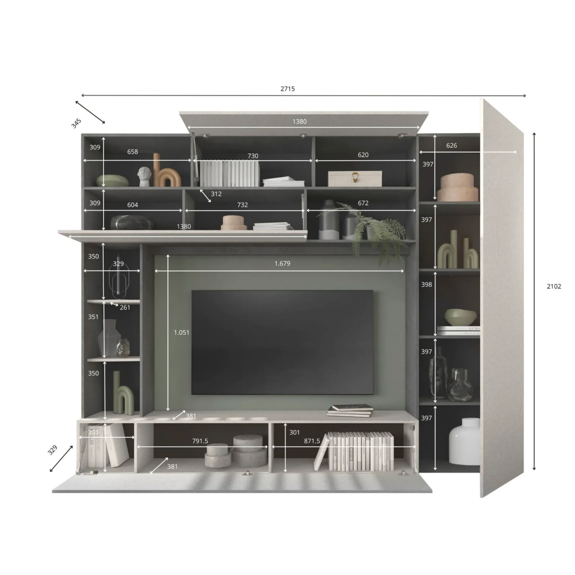 Parete attrezzata da soggiorno, 272x210x40 h cm, Cashmere e Mercure