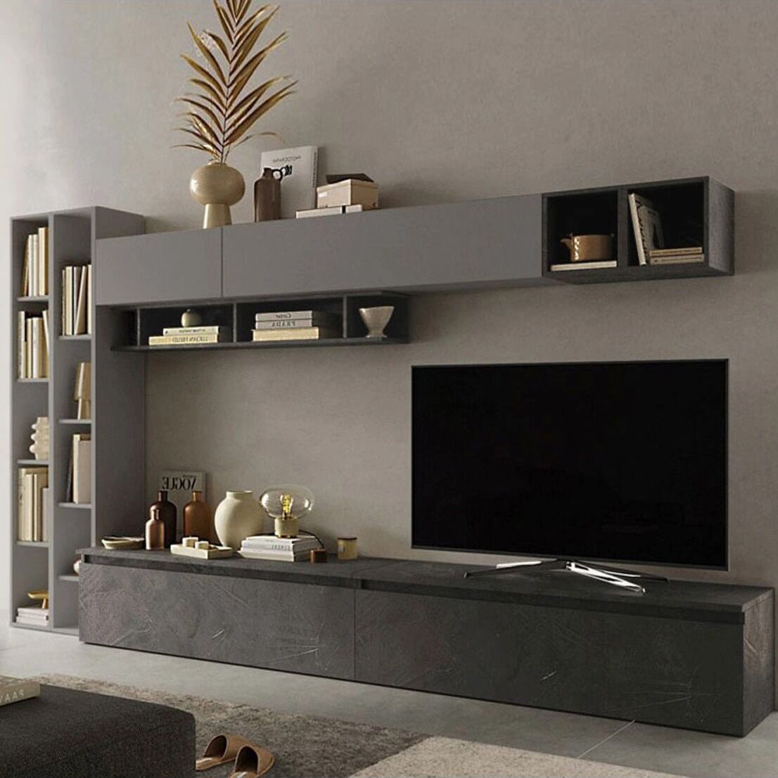 Grazie ai numerosi pensili e alle librerie verticali potrai organizzare i tuoi soprammobili per rendere il tuo soggiorno unico.
