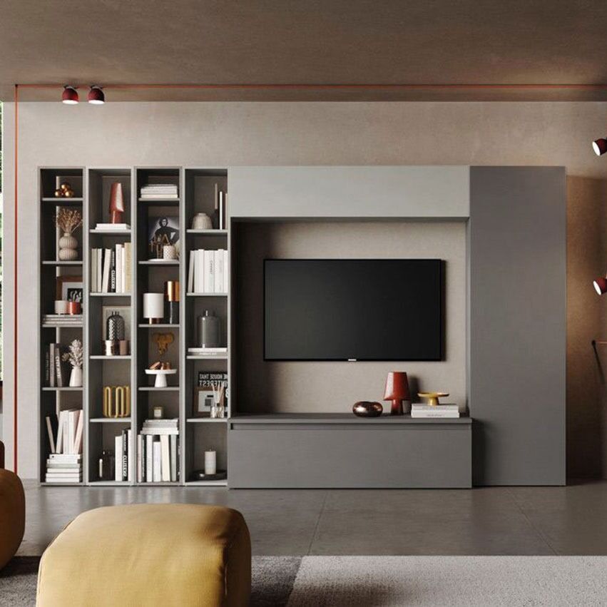 Sei alla ricerca di una soluzione completa per la tua zona living, in grado di offrirti praticità e design nello stesso tempo? La parete attrezzata finitura Ardesia e Gesso con libreria è la soluzione che fa per te!