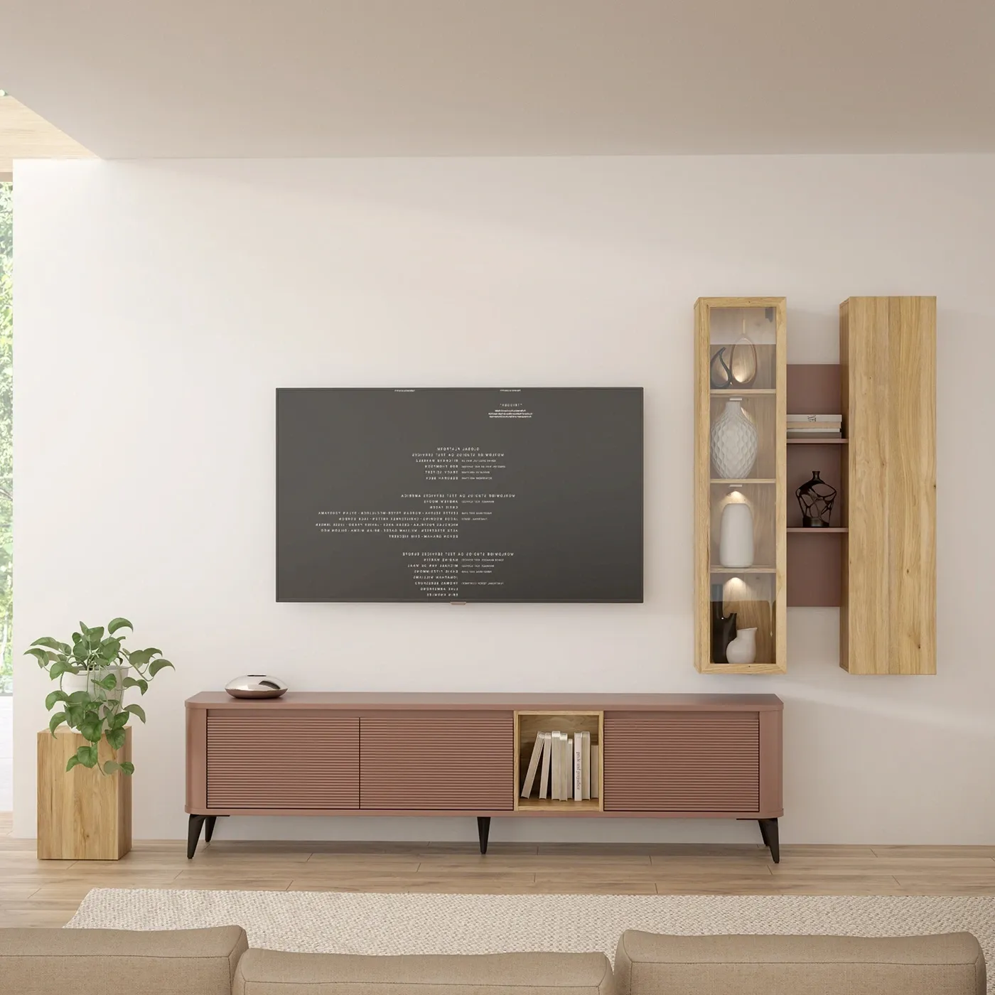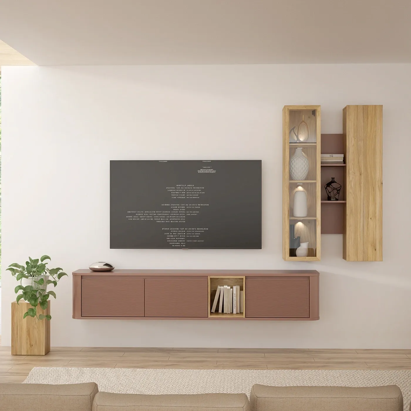 Parete attrezzata completa, Terracotta e Rovere Mauvella
