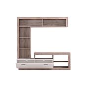 Parete attrezzata soggiorno, finitura Rovere grigio e Bianco opaco