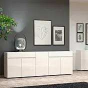 La madia viene proposta nella versione Bianca lucido, finitura di tendenza degli ultimi anni.