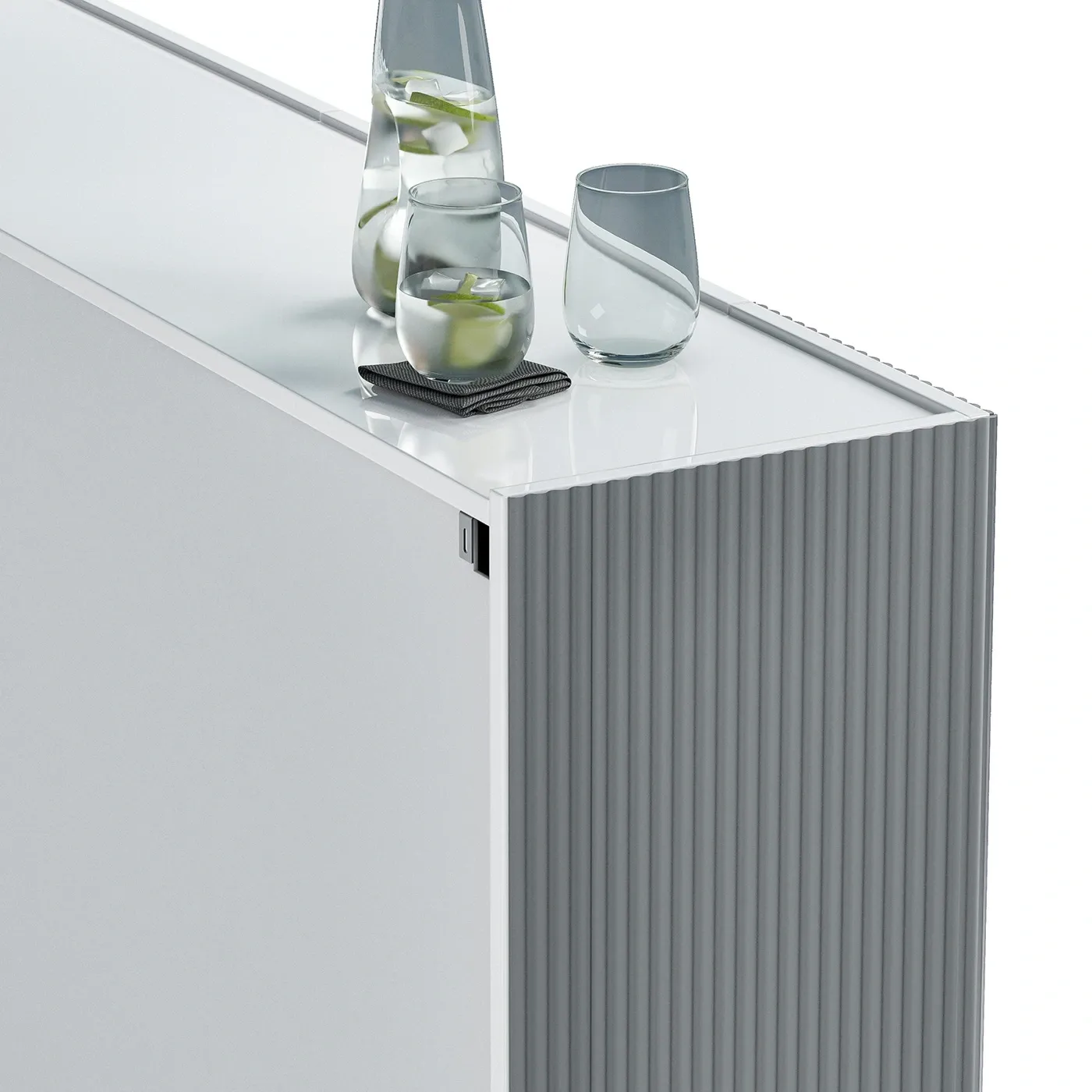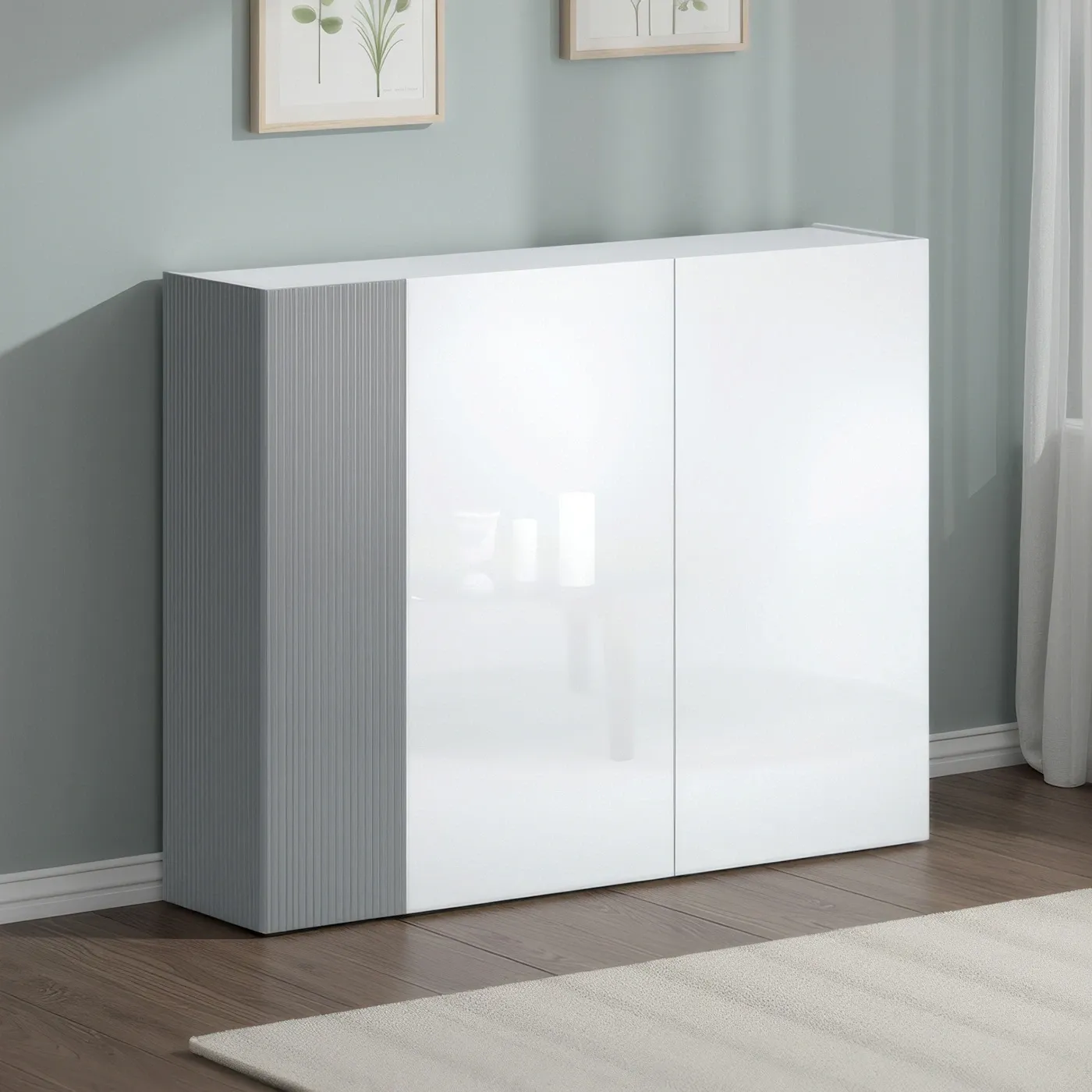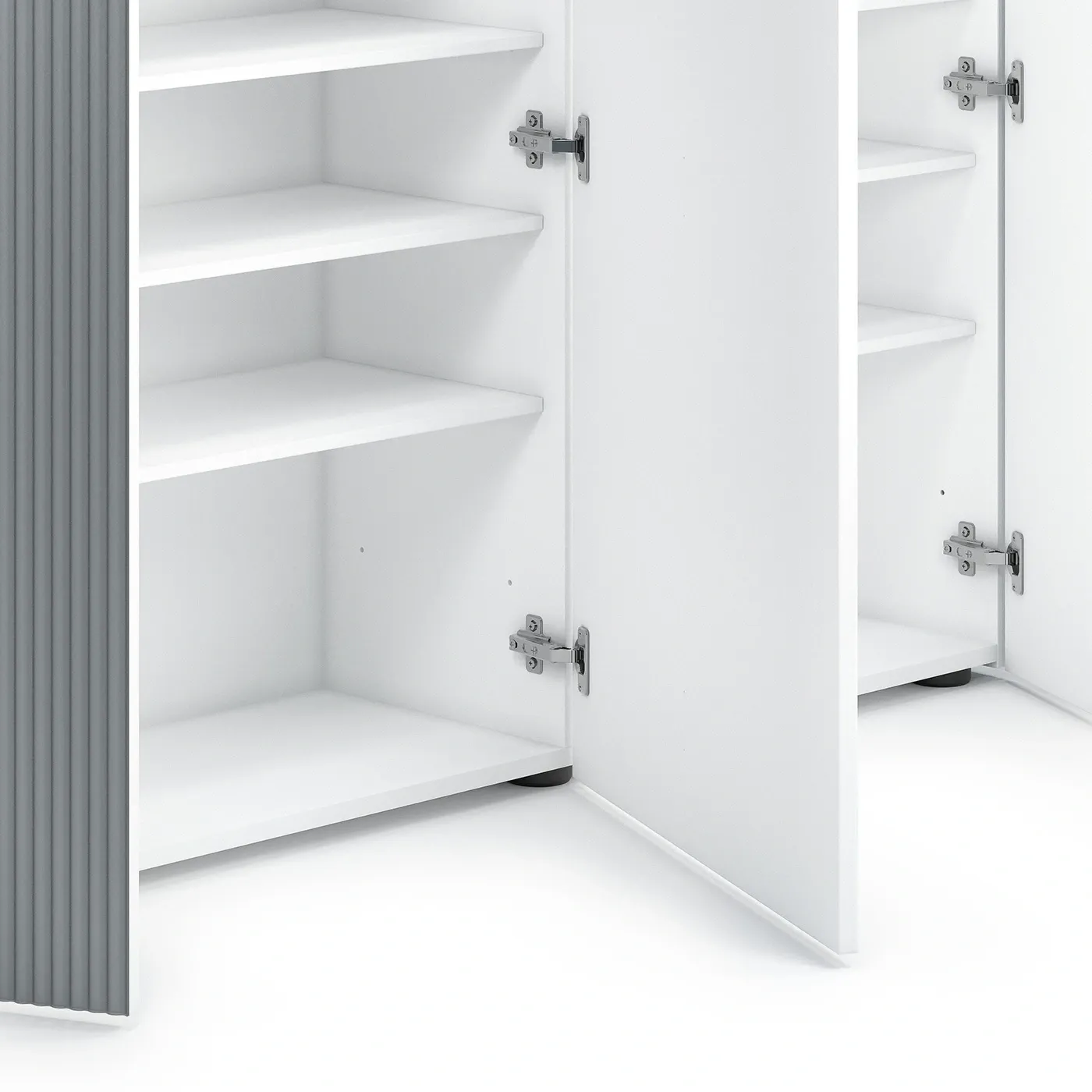 Scarpiera a 3 ante, L.145 H.115 P.34, Bianco e Vetro cannettato Grigio