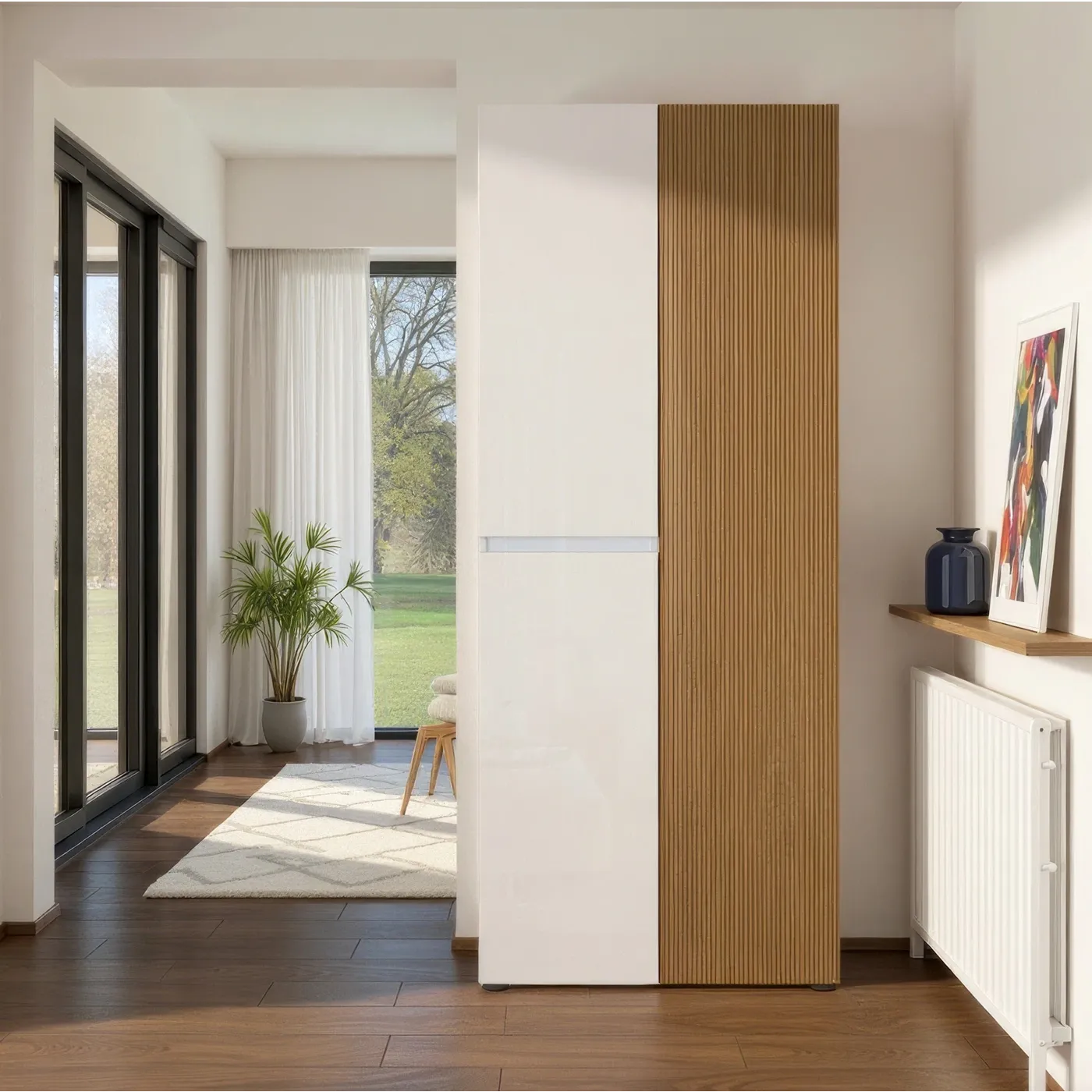 Scarpiera a 3 ante, 80x200x34 h cm, color Bianco e Rovere cannettato