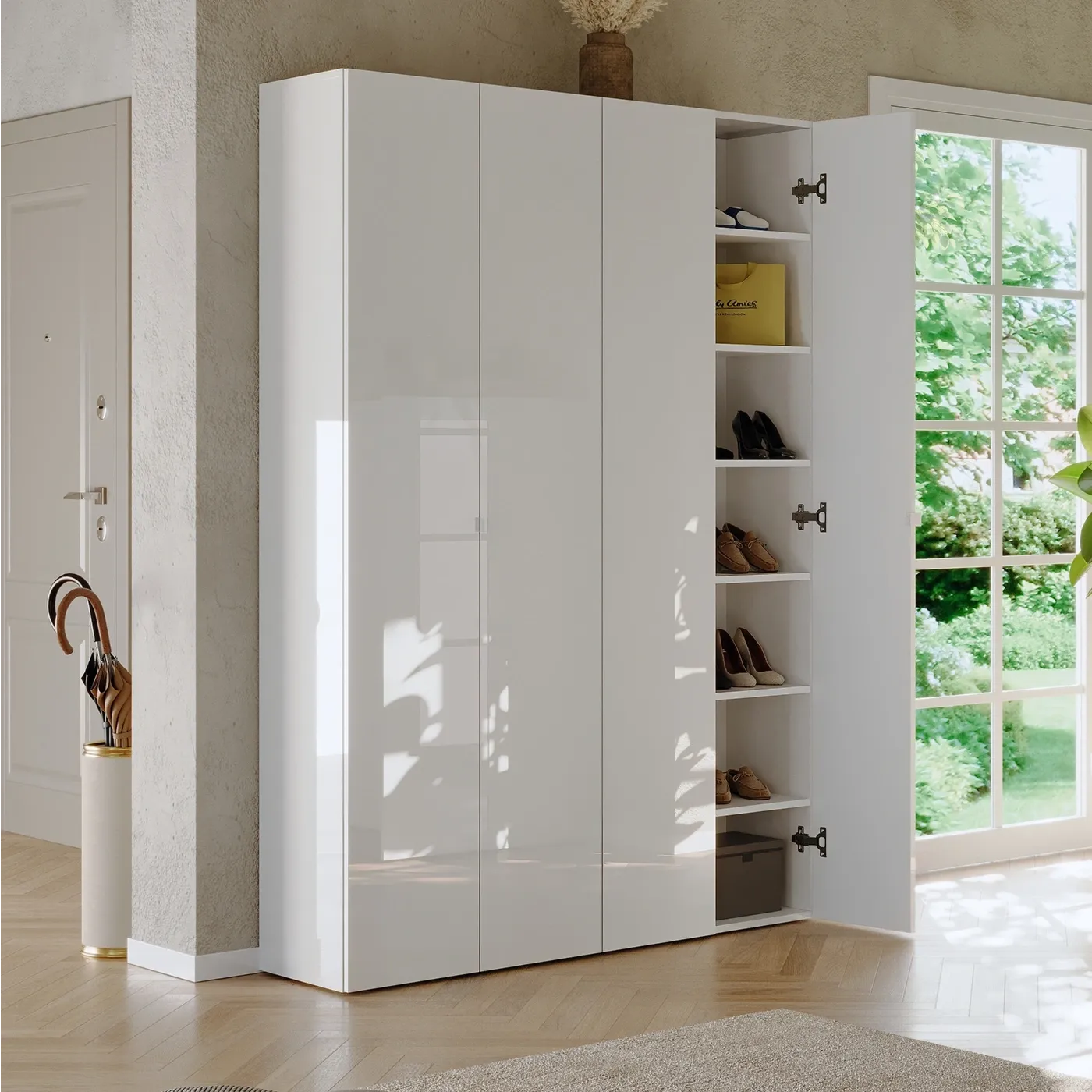 Scarpiera alta 4 ante, 126x186x35 h cm, Bianco lucido