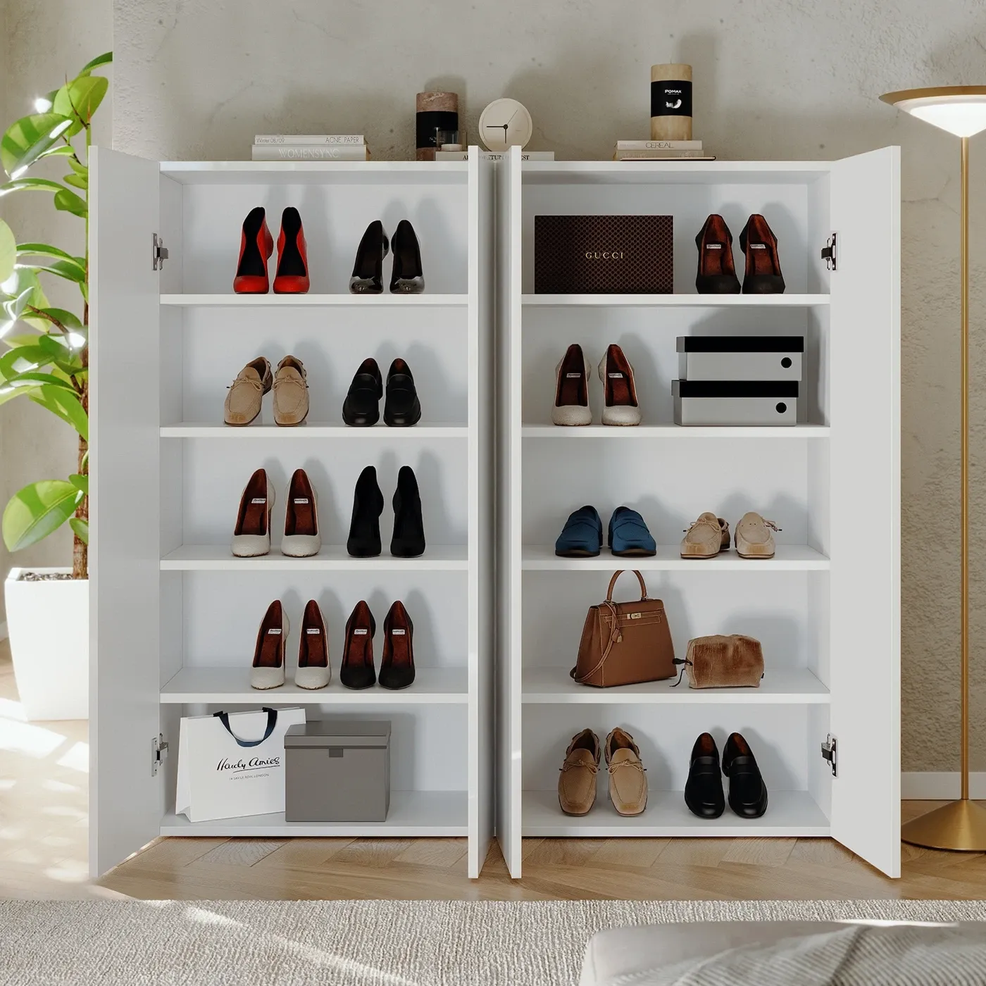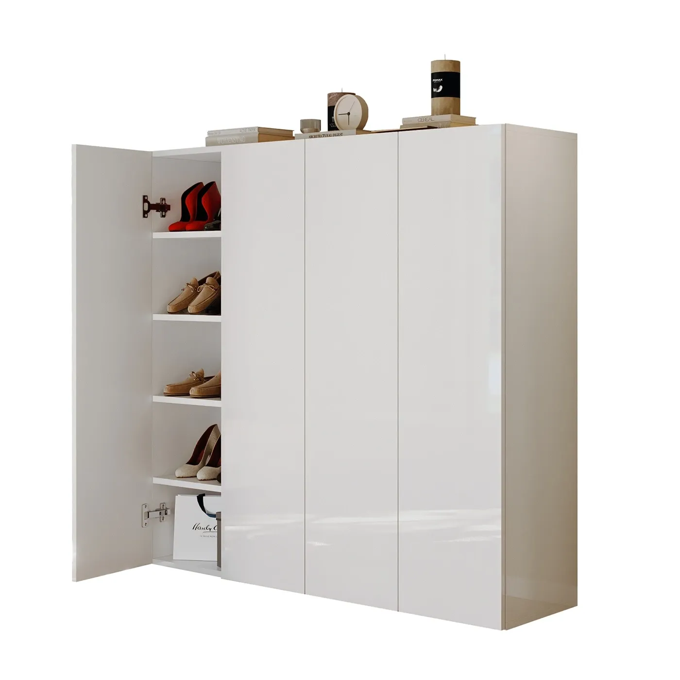 Scarpiera bassa 4 ante, 126x116x35 h cm, Bianco lucido