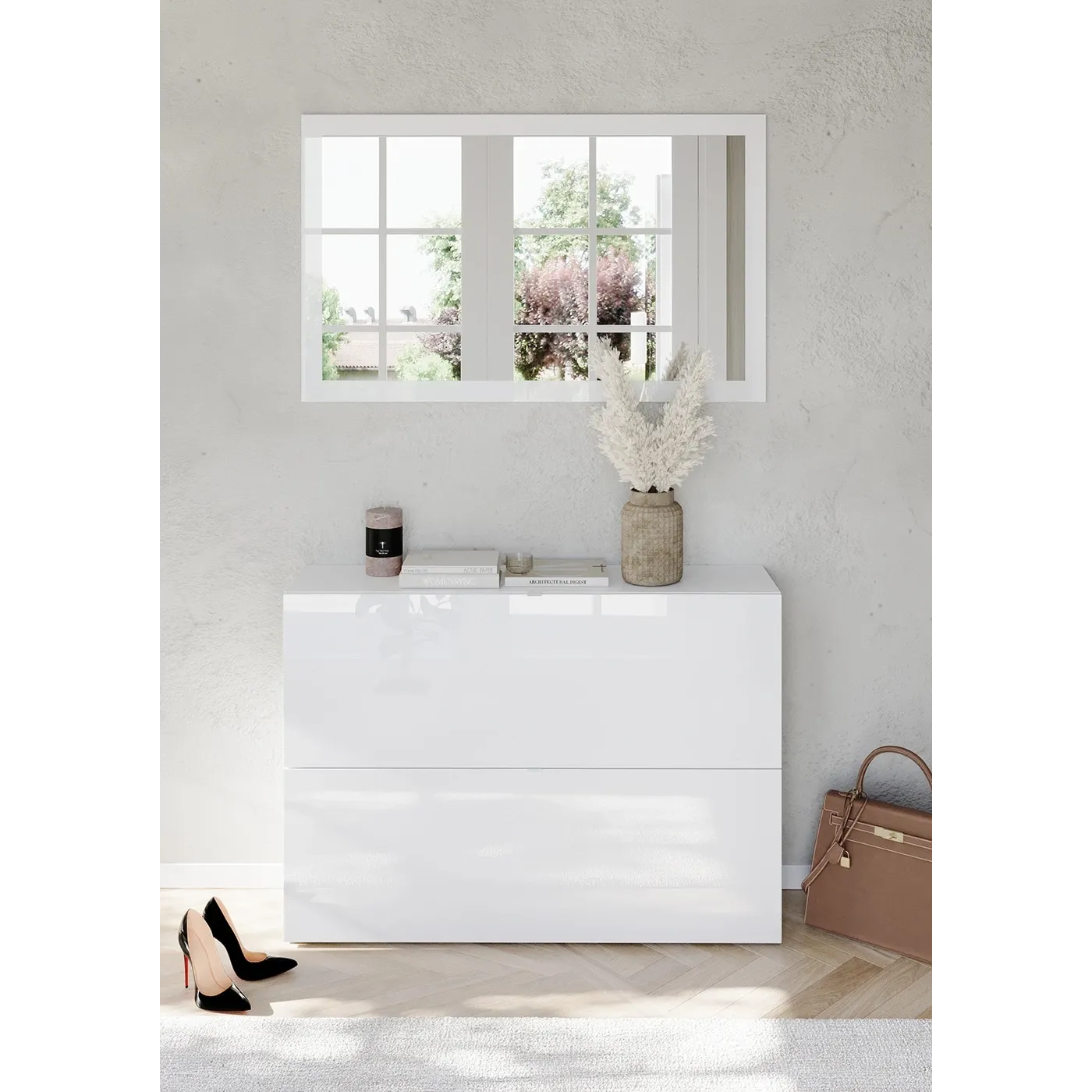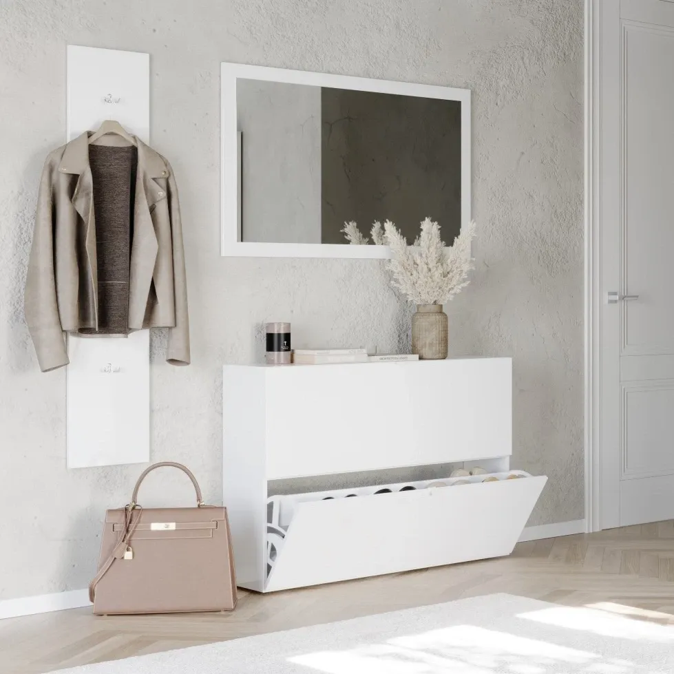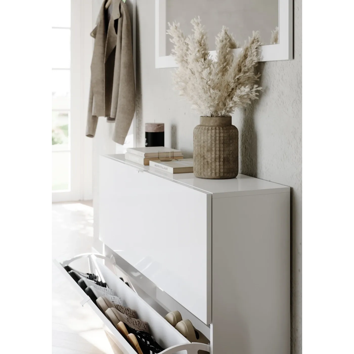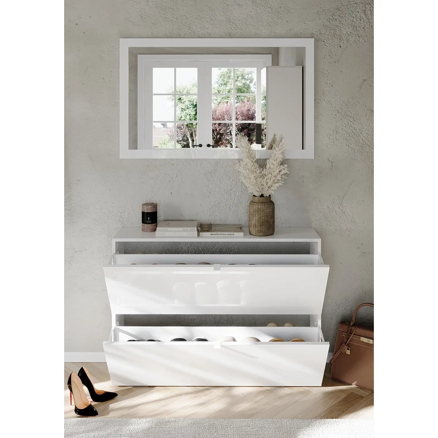 Scarpiera sospesa 2 ribalte, 110x75x25 h cm, Bianco lucido