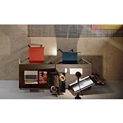 La zona studio ha una doppia postazione pensata per assicurare una totale comodità durante lo studio. I due piani da 90 cm sono divisi da un pannello centrale per garantire la massima concentrazione. E' possibile richiedere come optional il porta oggetti in metallo e le sedie.
