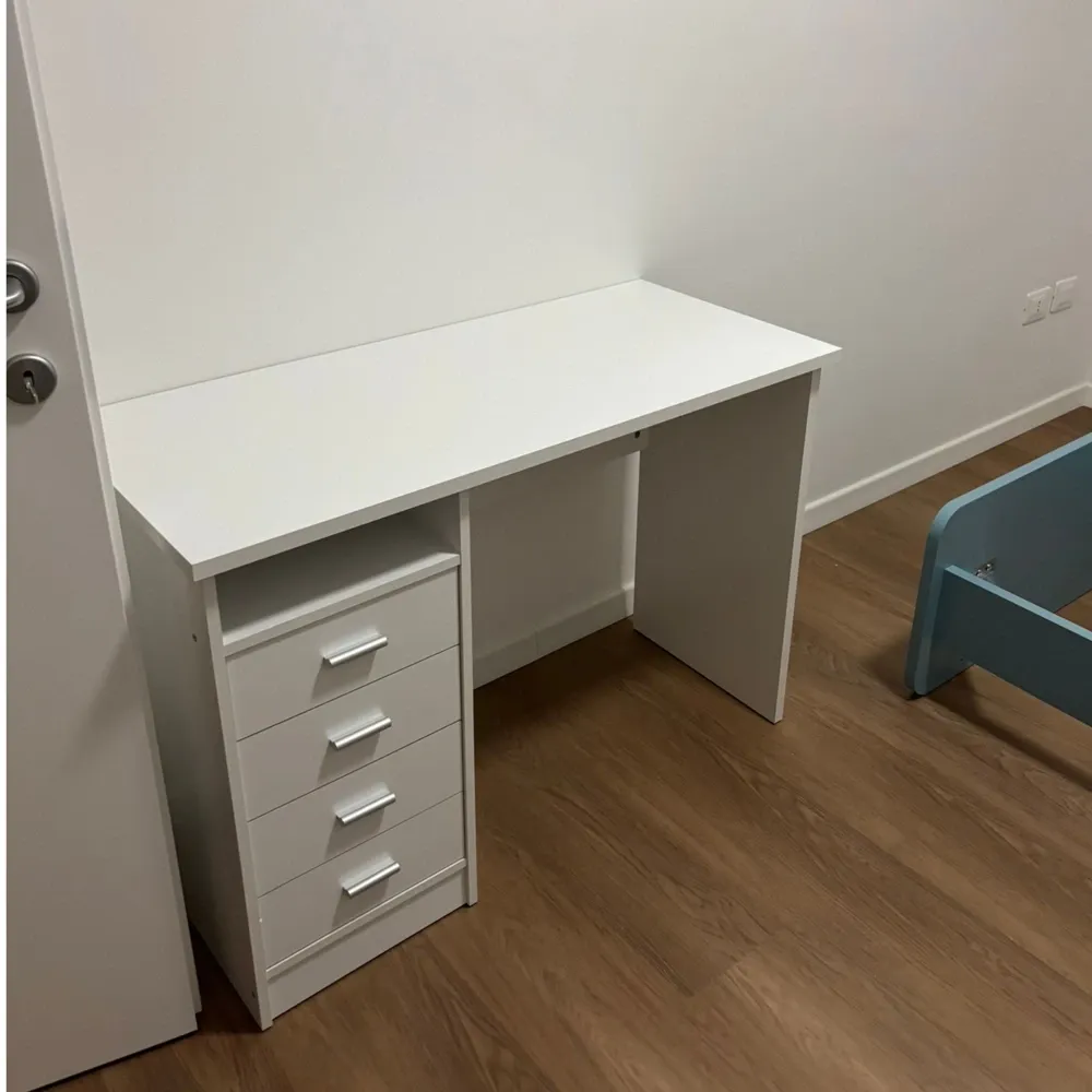 Scrivania con quattro cassetti e con uno scomparto aperto