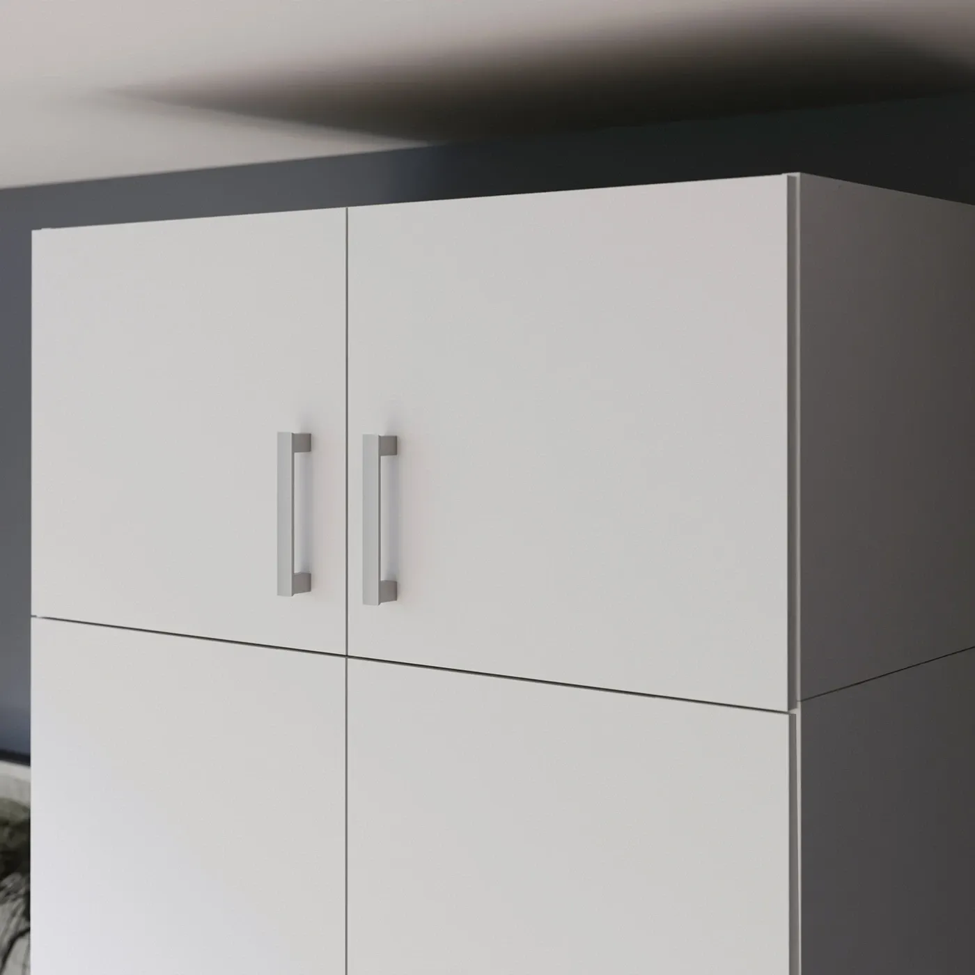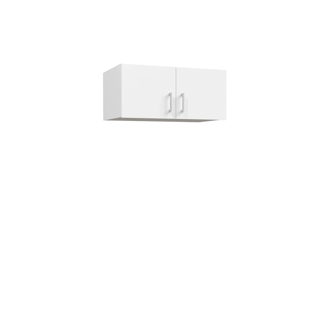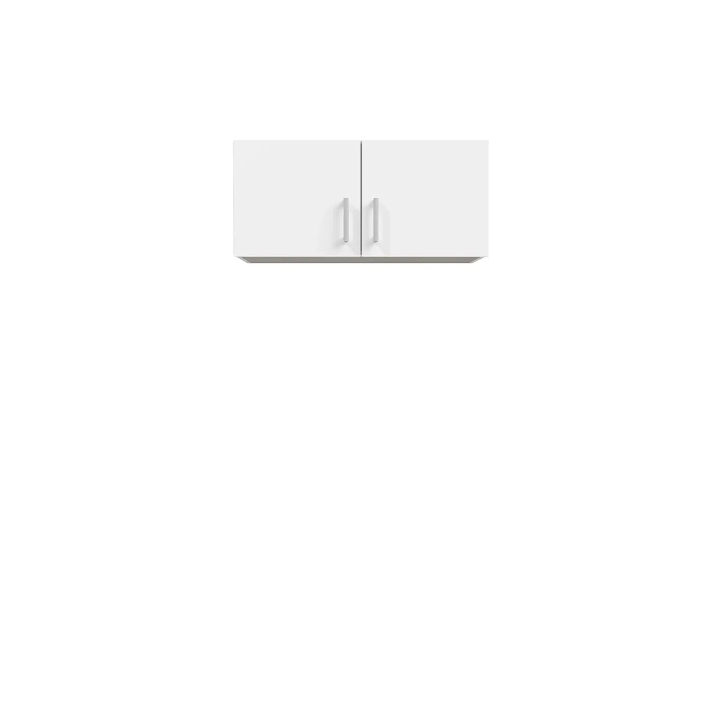 Sopralzo color Bianco a 2 ante battenti ideale per essere fissato sopra ad armadi di lunghezza 90 cm. Disponibile anche nella finitura Rovere mauvella.