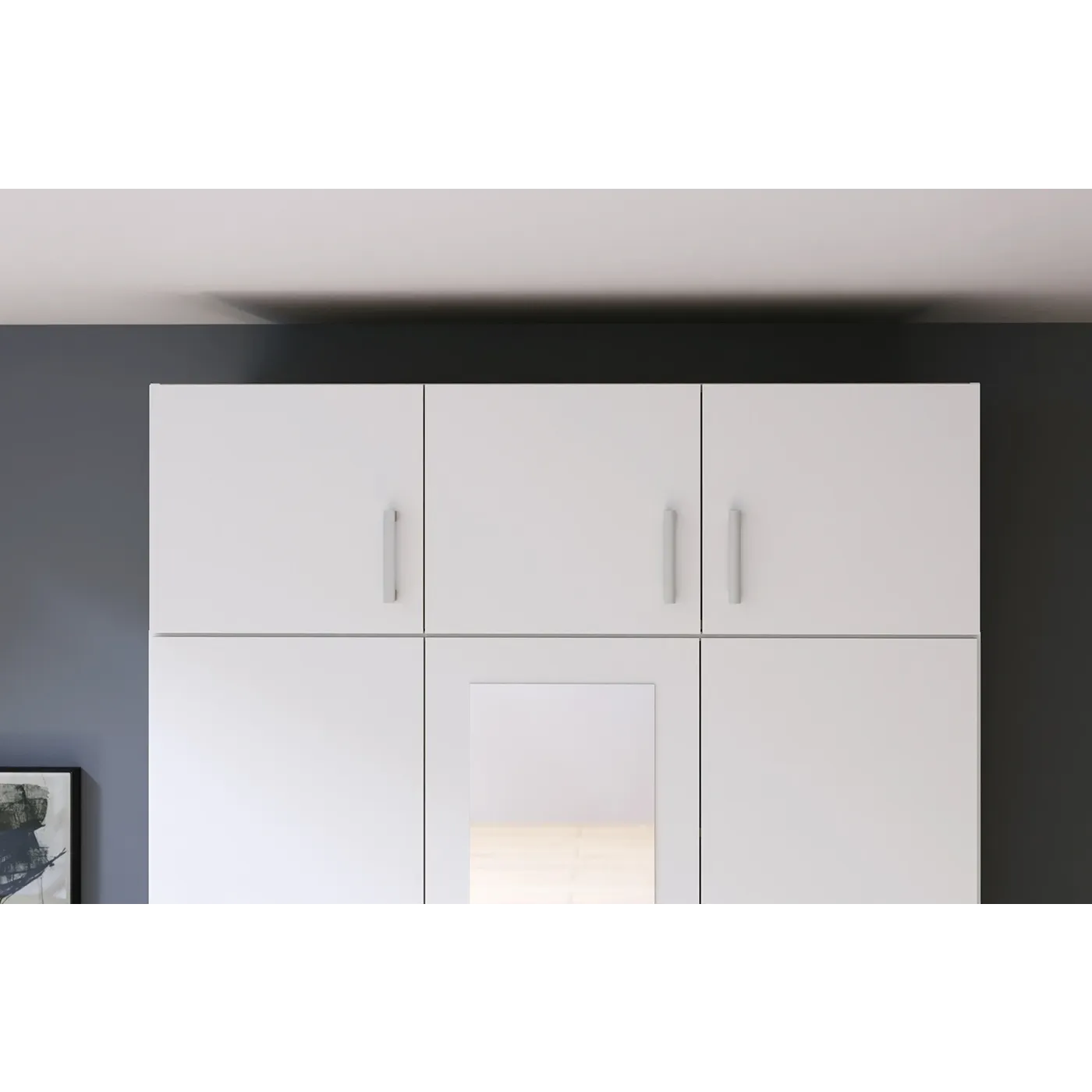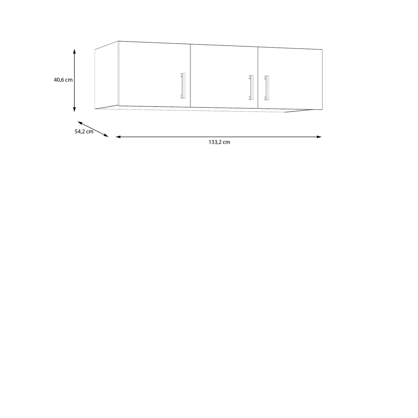 Sopralzo color Bianco a 3 ante battenti ideale per essere fissato sopra ad armadi di lunghezza 135 cm. Disponibile anche nella finitura Rovere mauvella.
