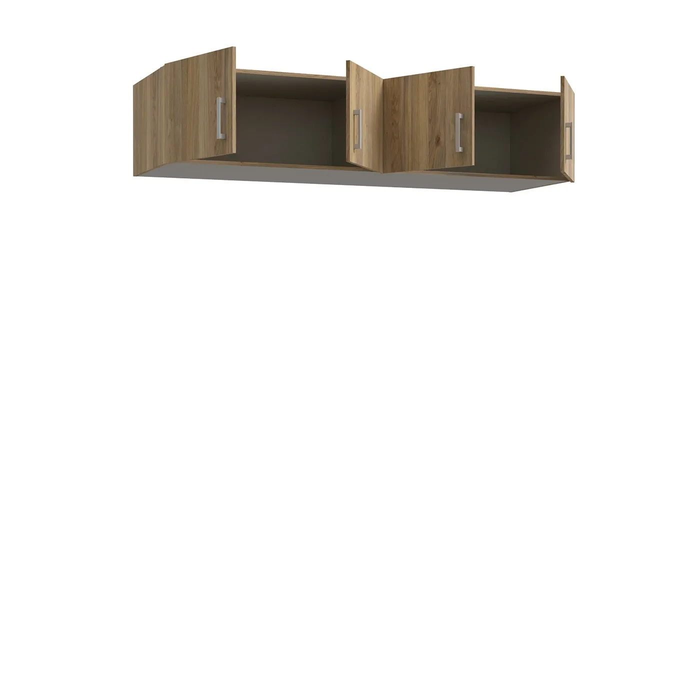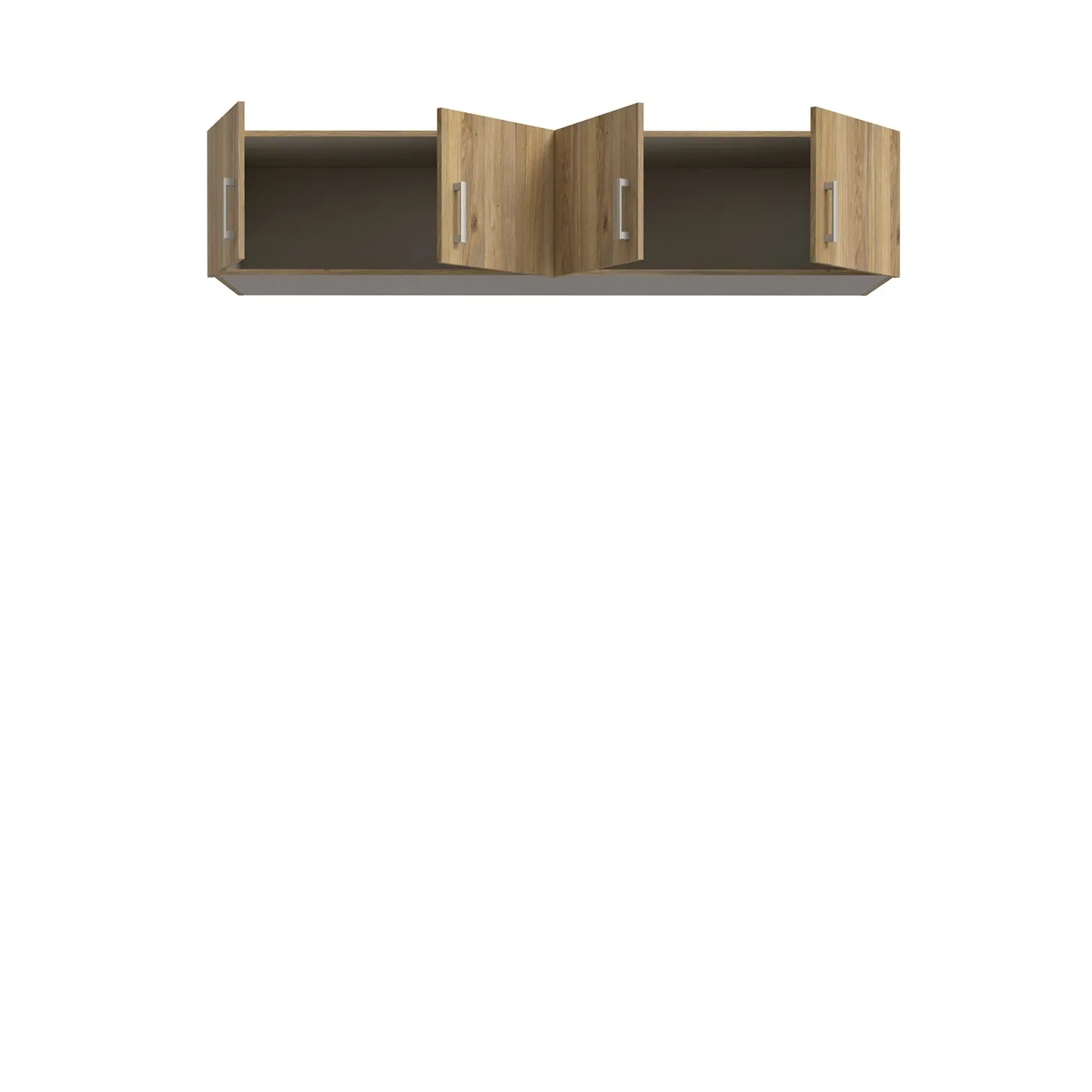Sopralzo color Rovere mauvella a 4 ante battenti ideale per essere fissato sopra ad armadi di lunghezza 180 cm. Disponibile anche nella finitura Bianco.