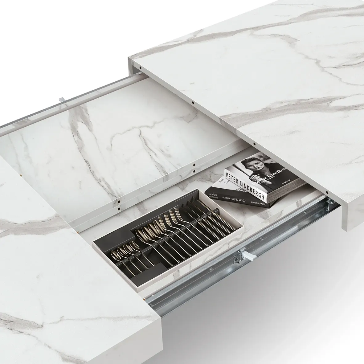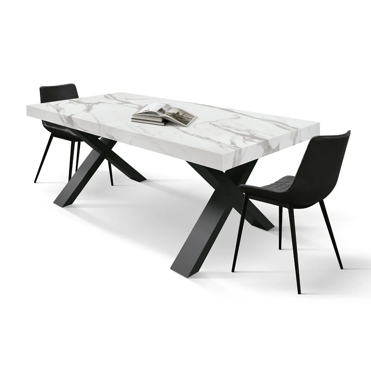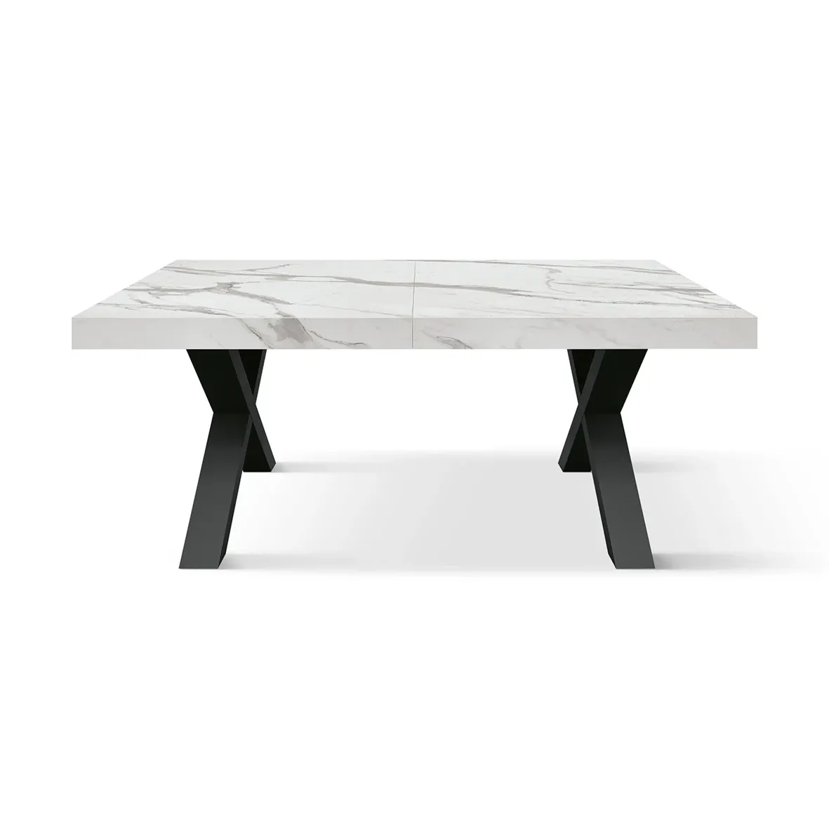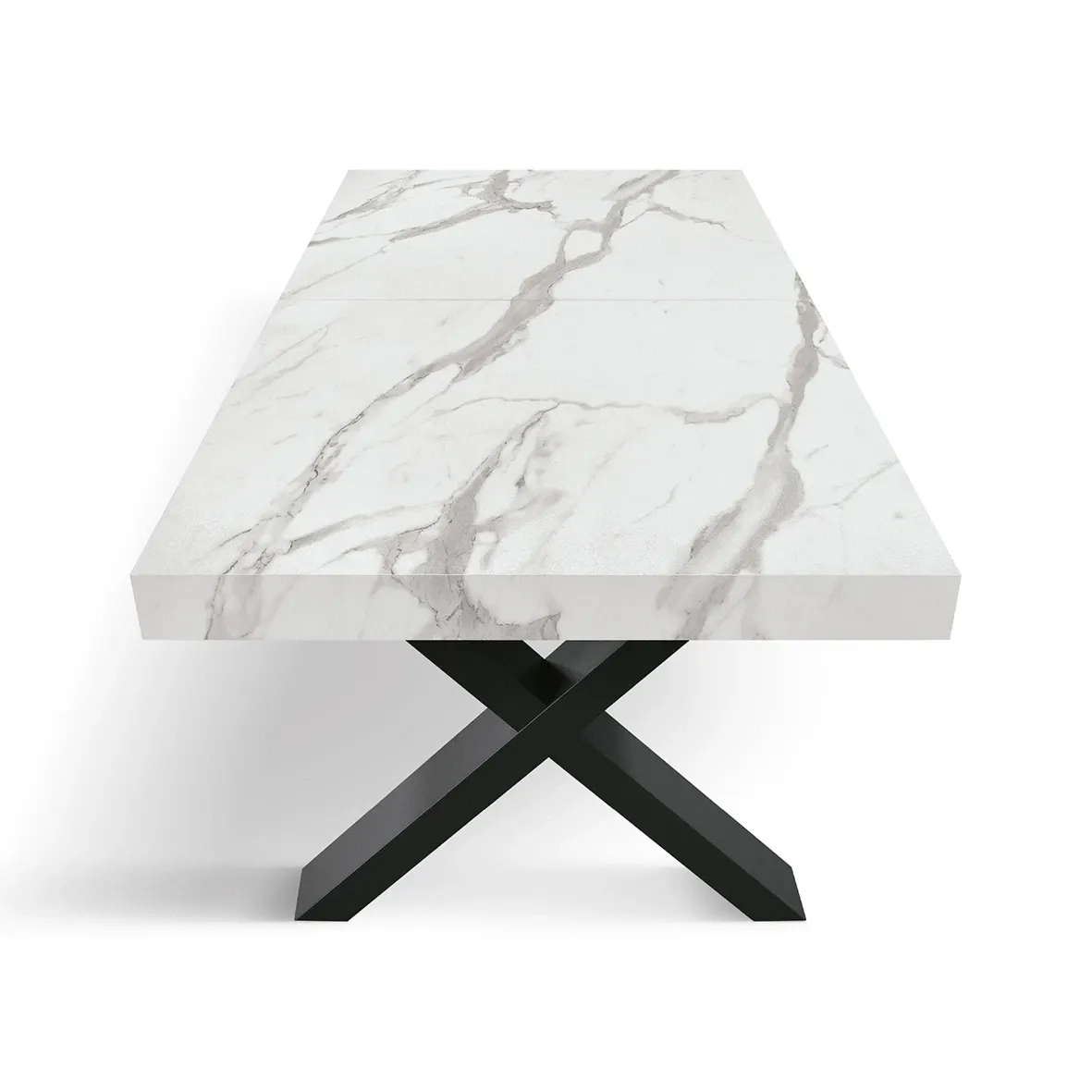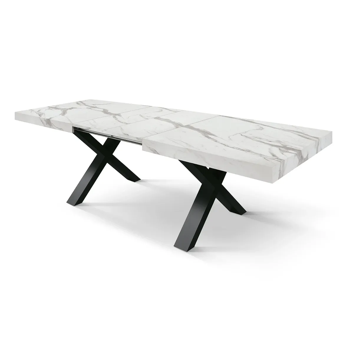 Tavolo allungabile con piano finitura Marmo Bianco statuario con 2 allunghe da 40 cm